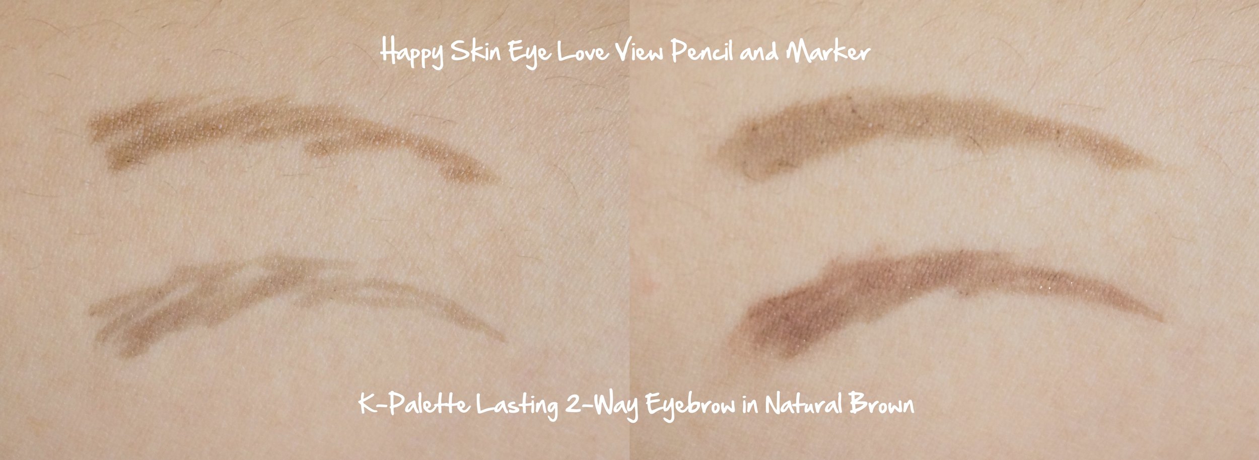 I highly recommend the Happy Skin Eye Love View Pencil and Marker (P799) and the K-Palette Lasting 2-Way Eyebrow (P950). Both are extremely long-wearing and also come with a dual tip - the pen and a pencil/powder to set it with. The pencil/powder tip creates depth and lushness on your eyebrows; you won't even need a mascara afterwards! Just make sure to use a light hand.