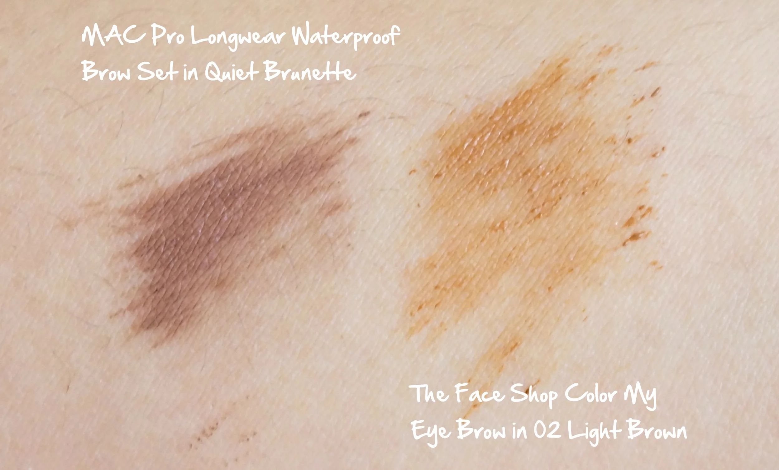 My favorite brow mascaras are the MAC Pro Longwear in Quiet Brunette (P1,000) and the The Face Shop Color My Eye Brow in 02 Light Brown (P395). I love using Quiet Brunette alone - it suits my hair color! The TFS Light Brown is too light by itself, but it's the perfect topper for a darker base. It highlights and gives my brows a nice blonde tint without actually looking blonde.