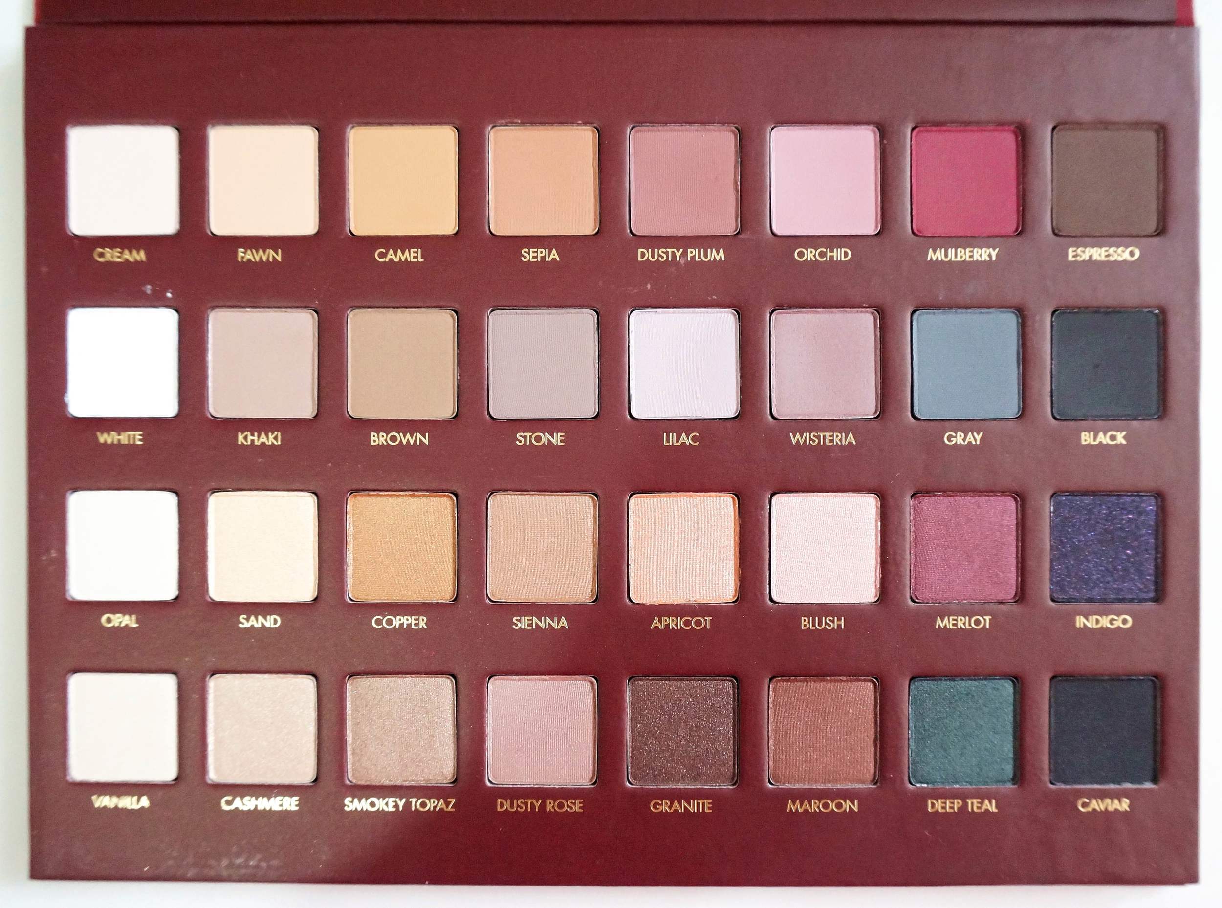 I like the combination of colors, how they range from white to mulberry to a dark teal to charcoal black. This'll really unlock your eyeshadow game! However, some of the colors differ minimally from each other. For example the first row are just variations of white. Sure the texture and finish are different from each other, but it'll still look white when observed from afar. Same with Black and Caviar - they are almost the same.