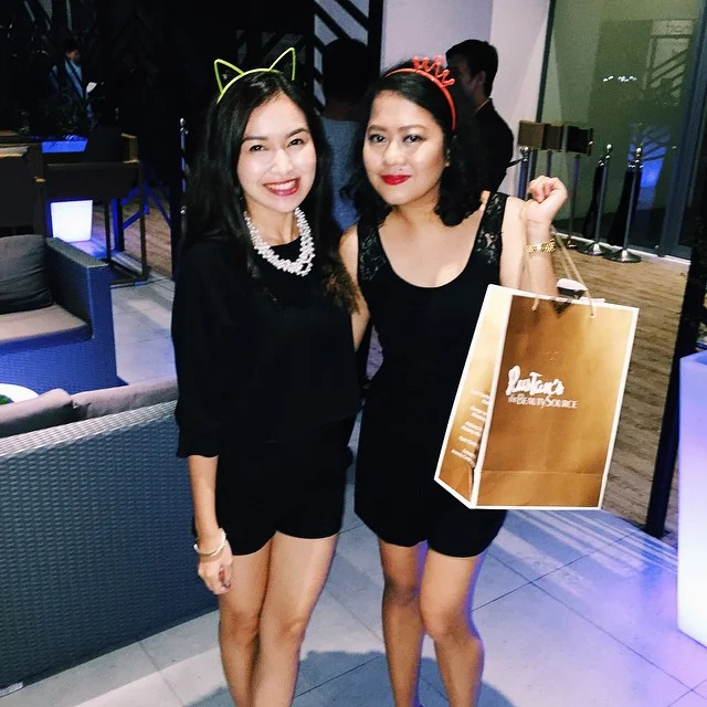 160 Rose Grand Amour is my favorite! Such an intense true red. This is the ultimate holiday lip color if you ask me! I failed to take an FOTD when I wore this last Saturday, but here I am with Angela during the beauty blogger Christmas party. So nice with a little black something no?