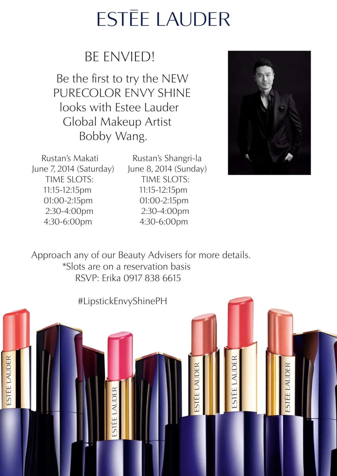 The brand's Beauty Advisers will help the participants create Estee Lauder Pure Color Envy Shine looks especially developed by Bobby Wang for Filipinas. The workshop fee is just P2,000 but it is consumable in Estee Lauder products. Plus, if you purchase anything on the workshop day, you get special gifts!