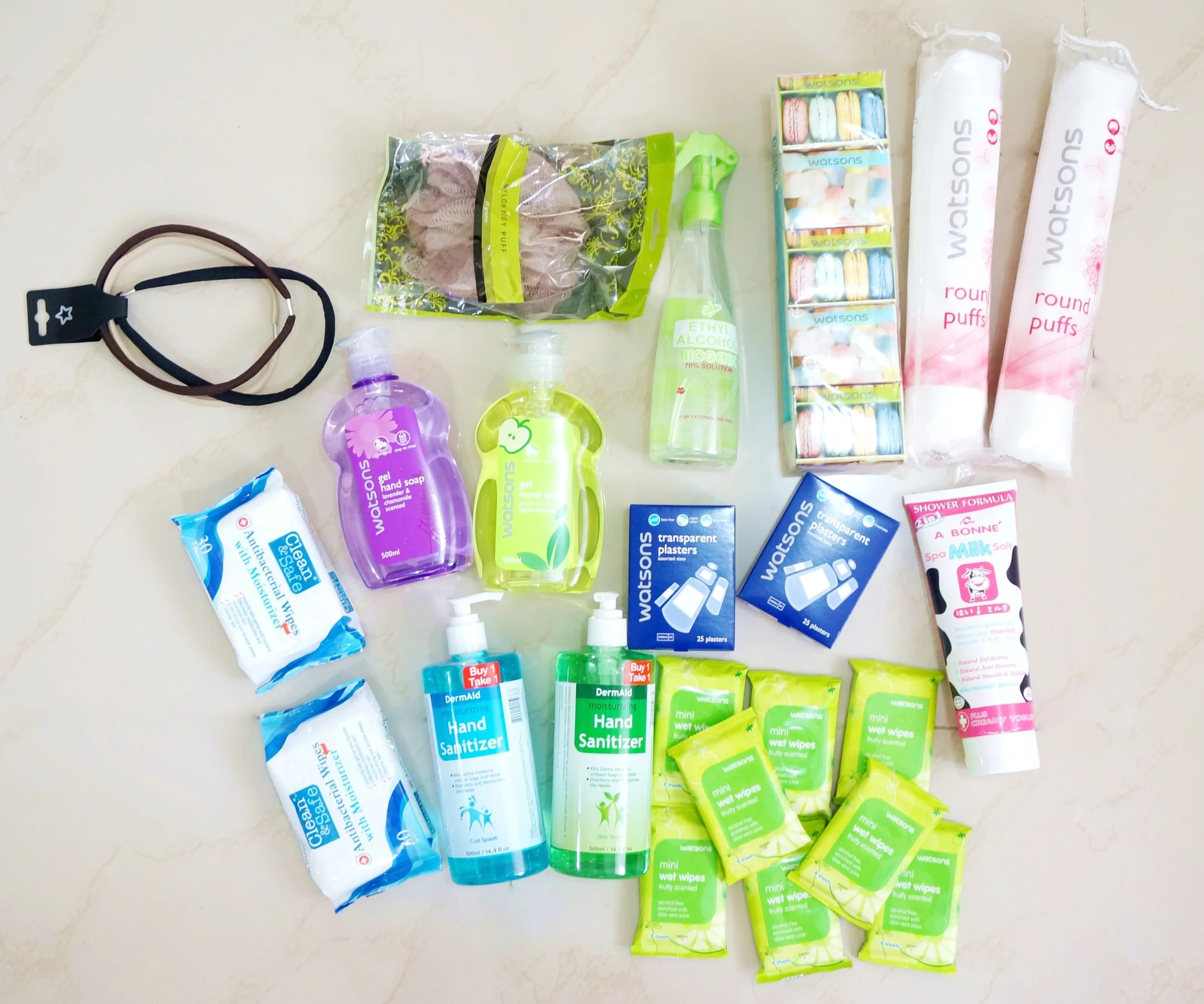 Aaaaaaand here's my haul! As usual, I got the Watsons Round Puffs, the pocket tissues, Gel Hand Soap, Hand Sanitizer, mini Wet Wipes, and Transparent Plasters. These are all staples in the house, in my vanity, in my bag. ^_^ I also grabbed a loofah, elastic head bands, Clean & Safe Antibacterial Wipes, A Bonne Scrub, and Biogenic alcohol.