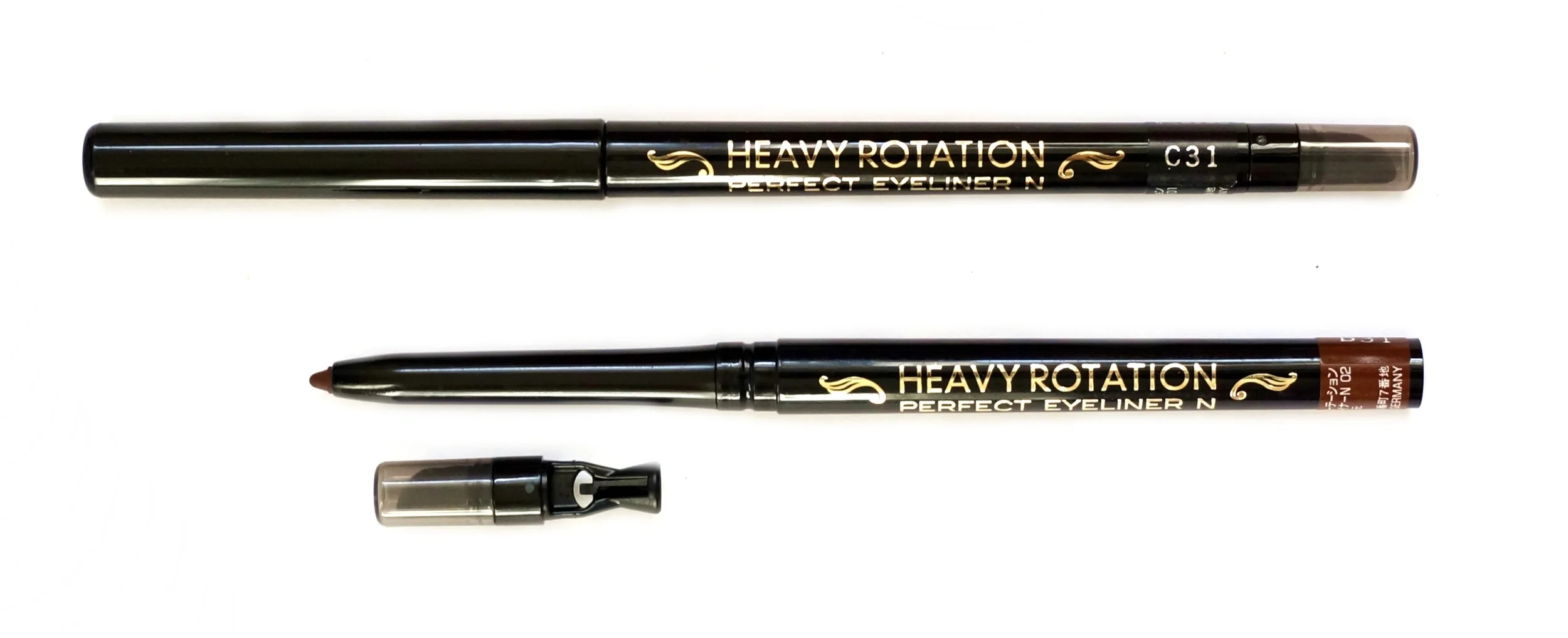 Heavy Rotation Perfect Eyeliner. This is the current pencil eyeliner I've been using. It's creamy, super black, and does not smudge. It comes with a rubber smudger tip to soften the line if you want a slightly smoky eye effect. If you're wondering, Heavy Rotation is available in Watsons where Heroine Make is!