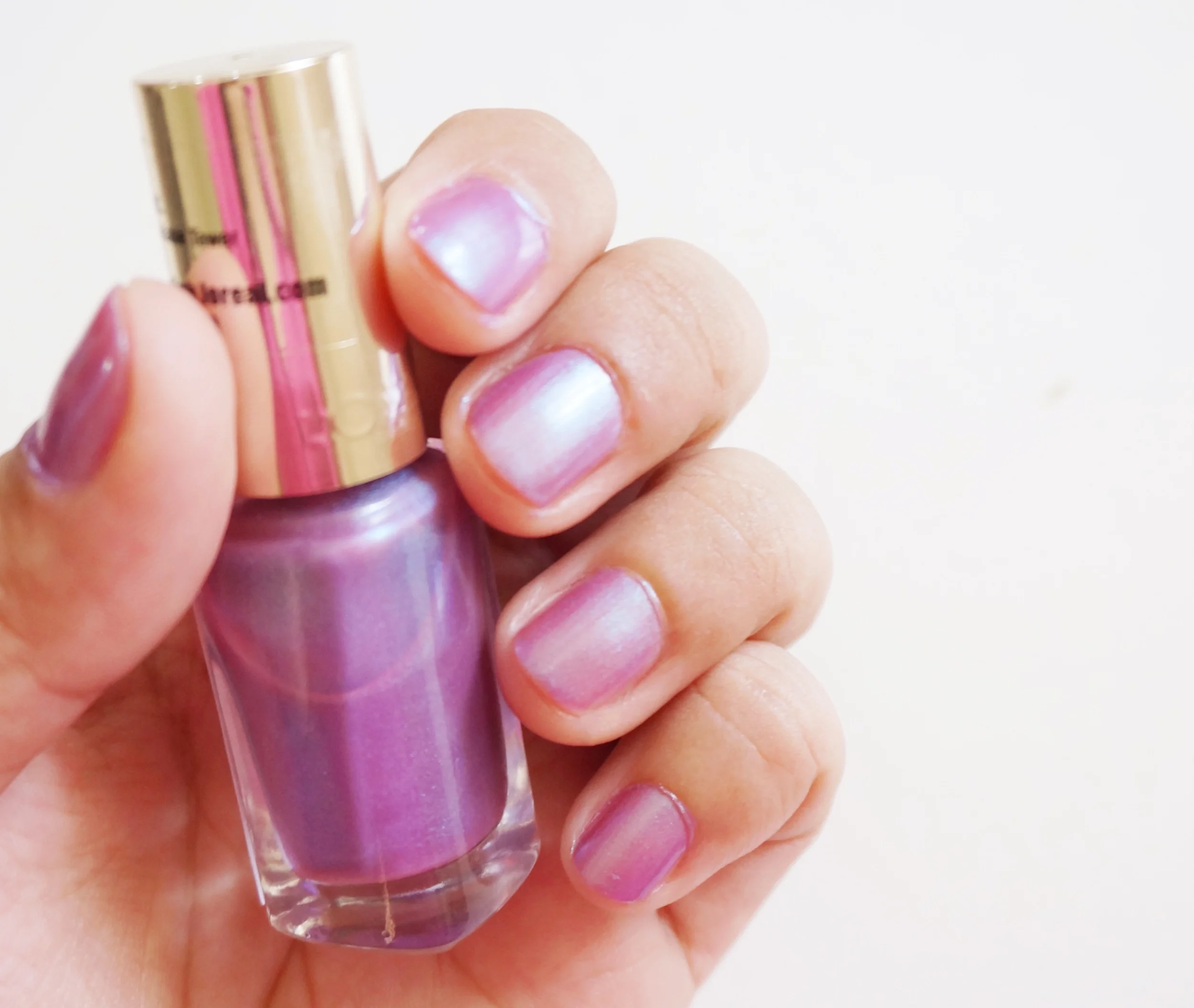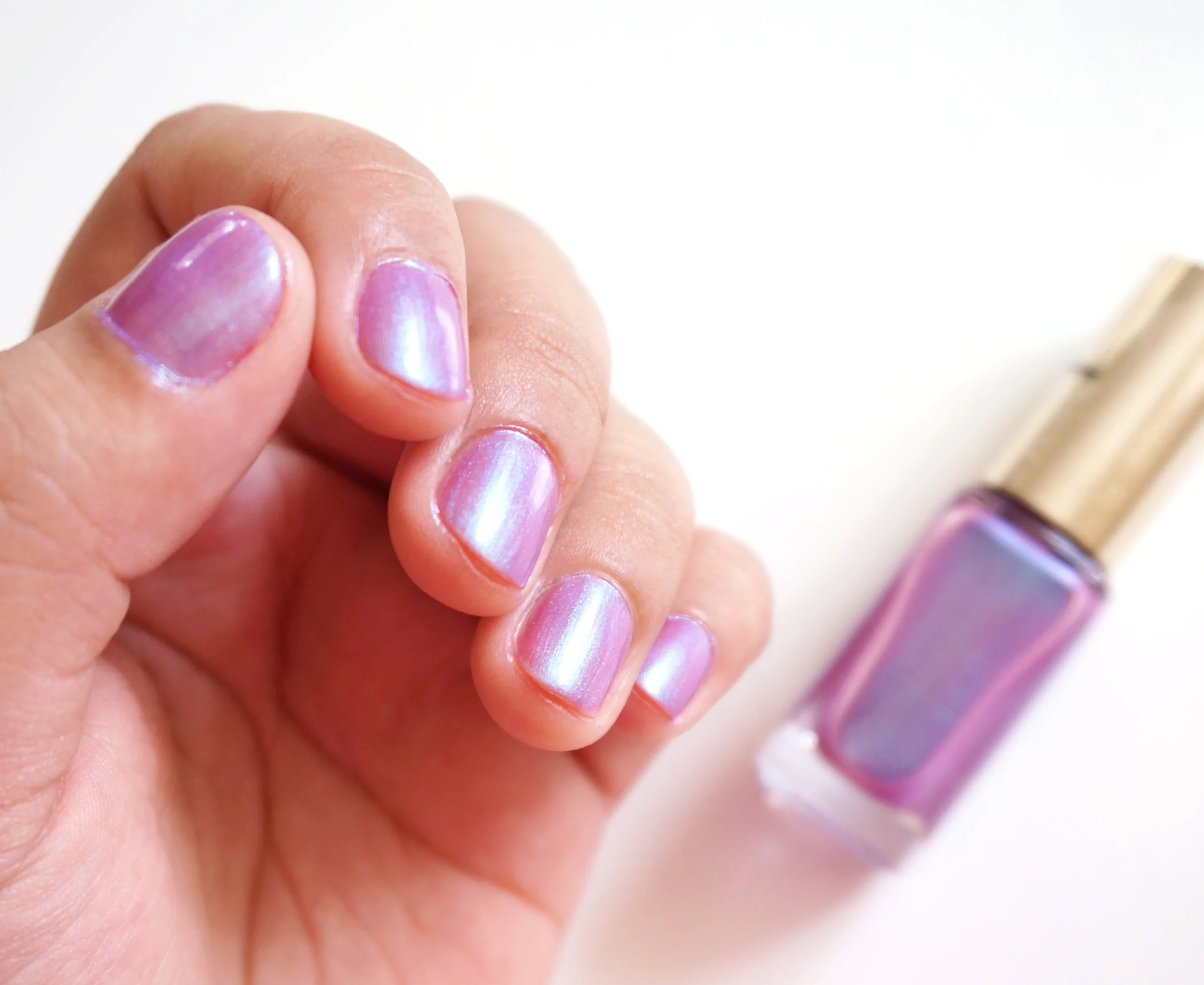 It's a dreamy warm lilac that has a subtle duochrome finish. When the light hits it, there is a soft sheen and you can see the pink flashing on the sides. Lilac is also typically challenging to pull off on Asian skin but this particular shade is fairly warm, with a strong pink base.