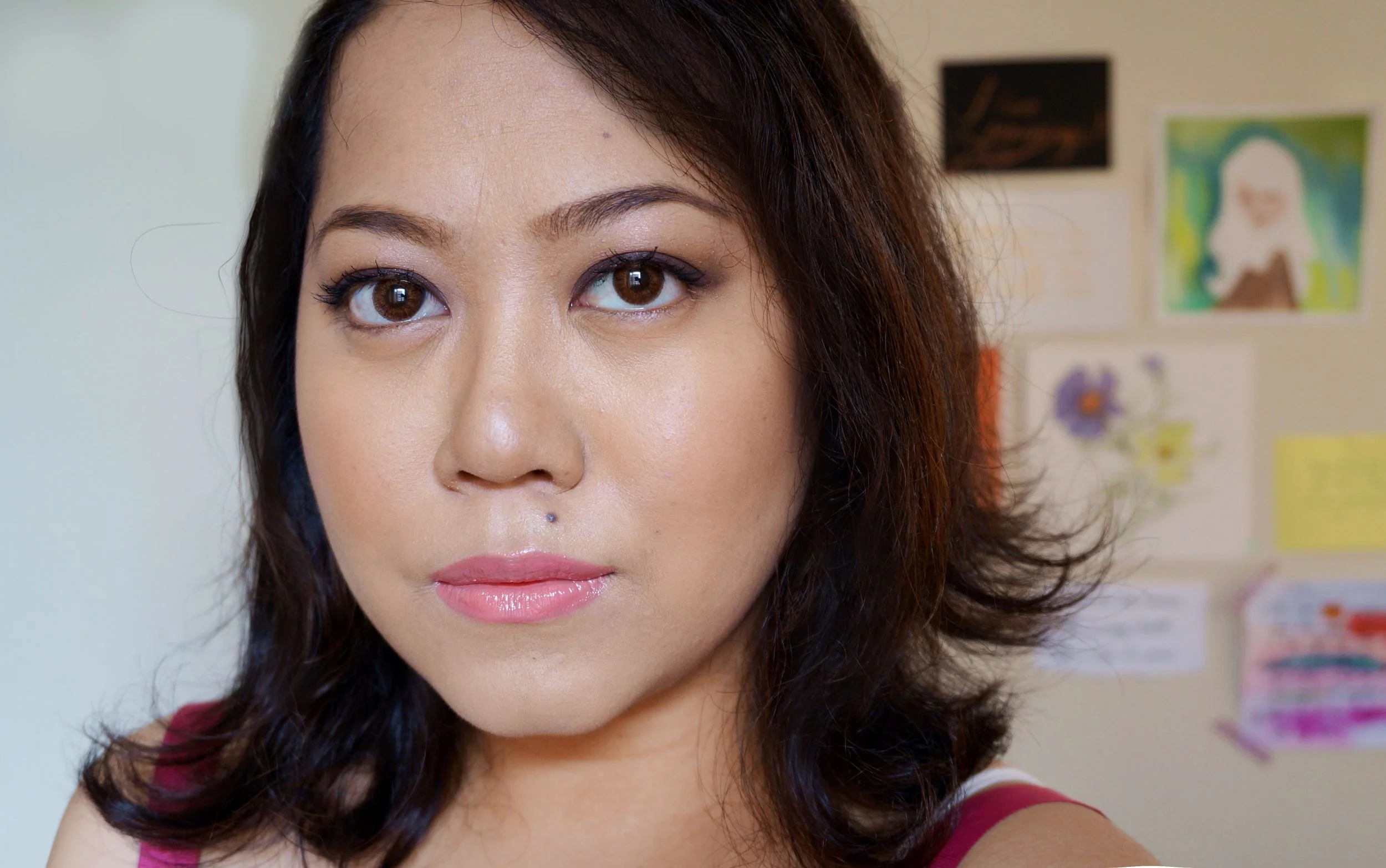 The colors are also flattering only my hair and skin tone. The matte blush is a warm peachy pink. The matte eyebrow/contour powder is dark enough for my hair and as a blending color for the eyes and even the nose. The glittery cocoa Lid/Liner color is fantastic when wet, as it can get very dark and smoky. Finally, the highlight shade is a pretty pink champagne that doesn't look too cool on Asian skin.