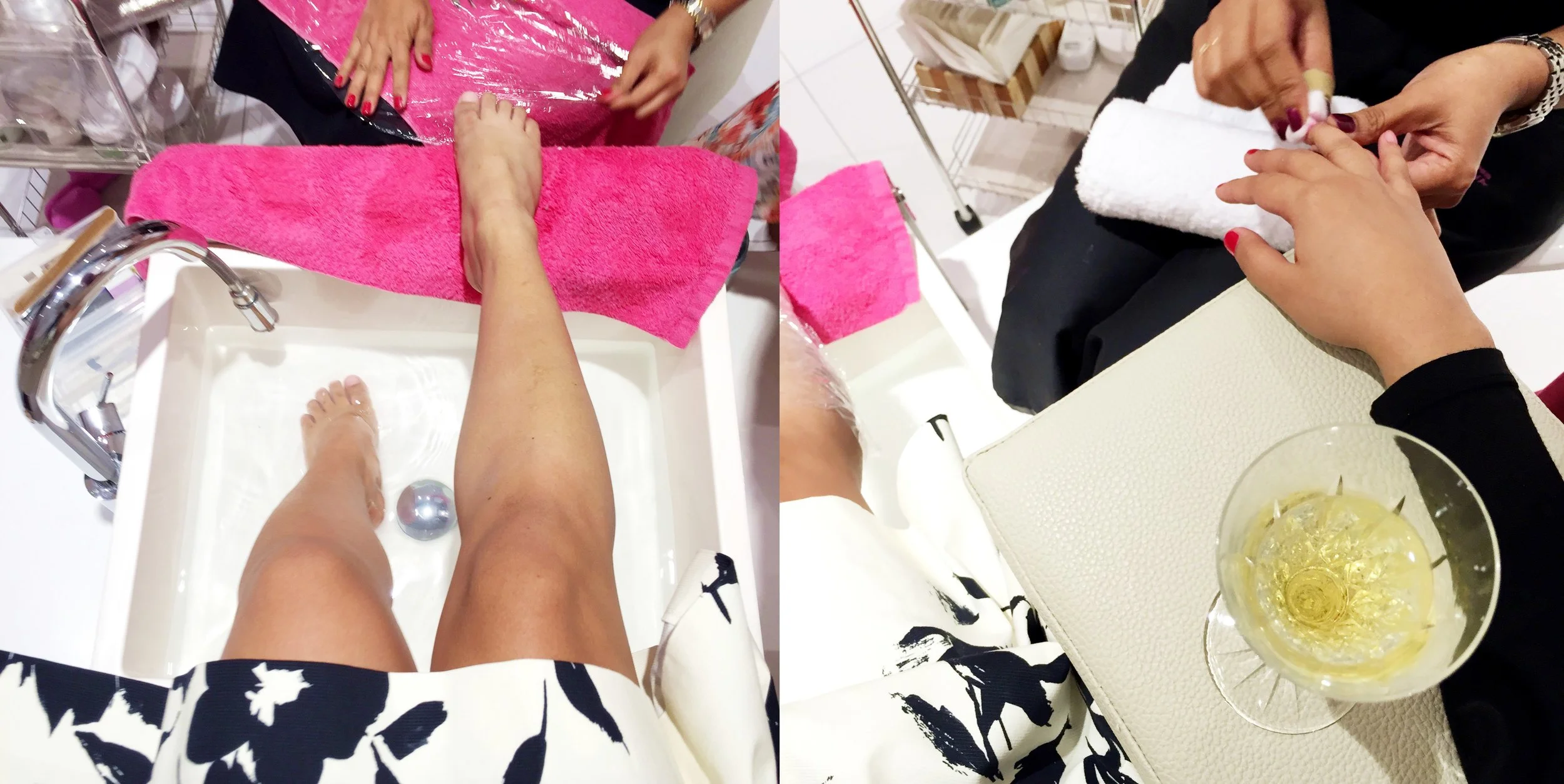We all had champagne and a box of TWG macarons thanks to Nikki Martel of Beauty Bar (love her). The pampering began with a soothing hot soak, a thorough scrub, paraffin wax (where our limbs are encased in warm, moisturizing wax infused with essential oils), and finally had our nails painted with our color of choice. Dashing Diva has a line of gorgeous polishes that last a fairly long time - I wore mine for a week!