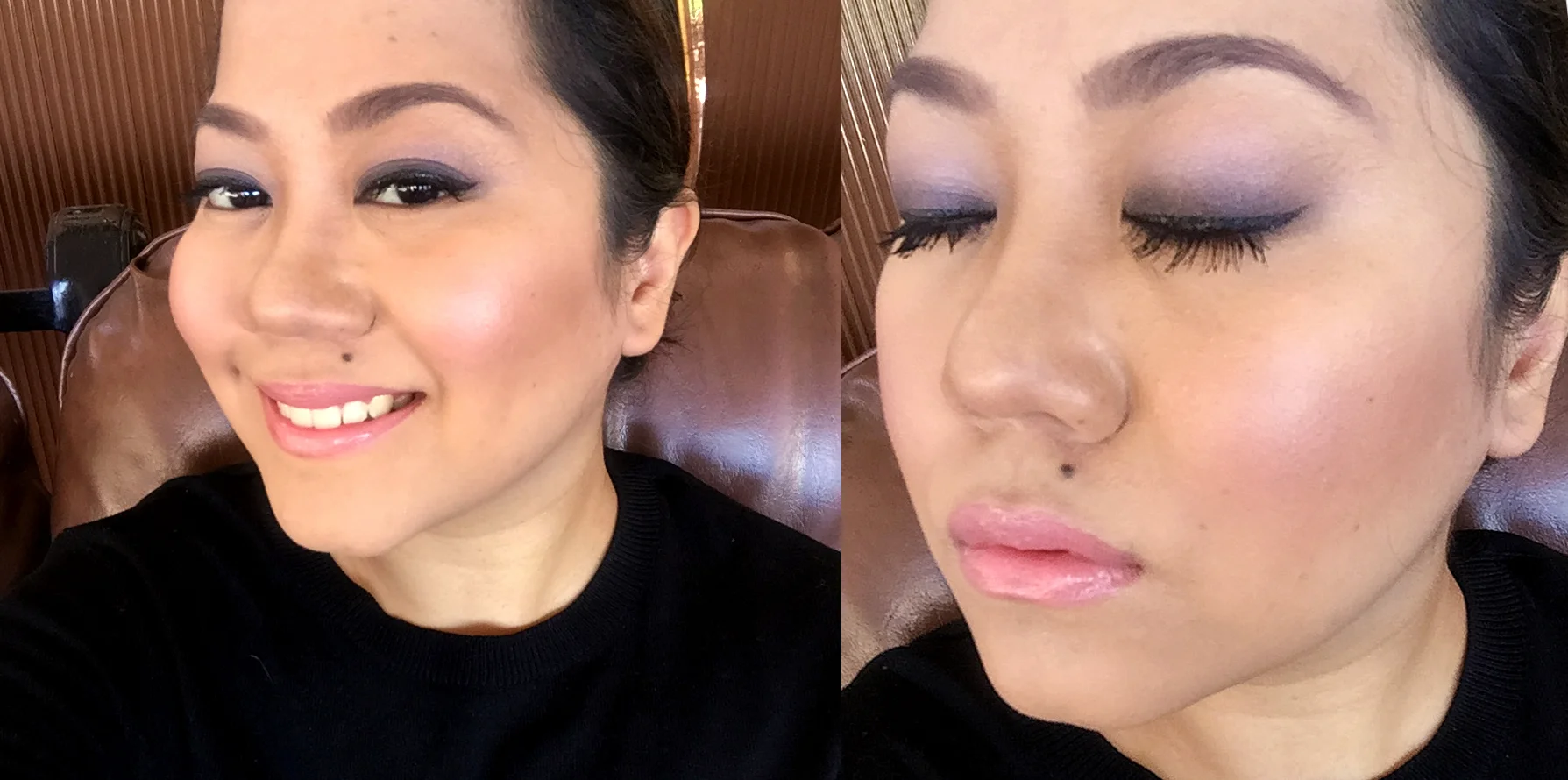 Like I said, those colors above aren't what would usually work for my skintone, but somehow, they do. How I like to wear the eyeshadow is apply the pink mauve all over the lids, layer the charcoal over on the area close to my lashes and a little up to the crease, and then pat on a bit of the pink in the centre.