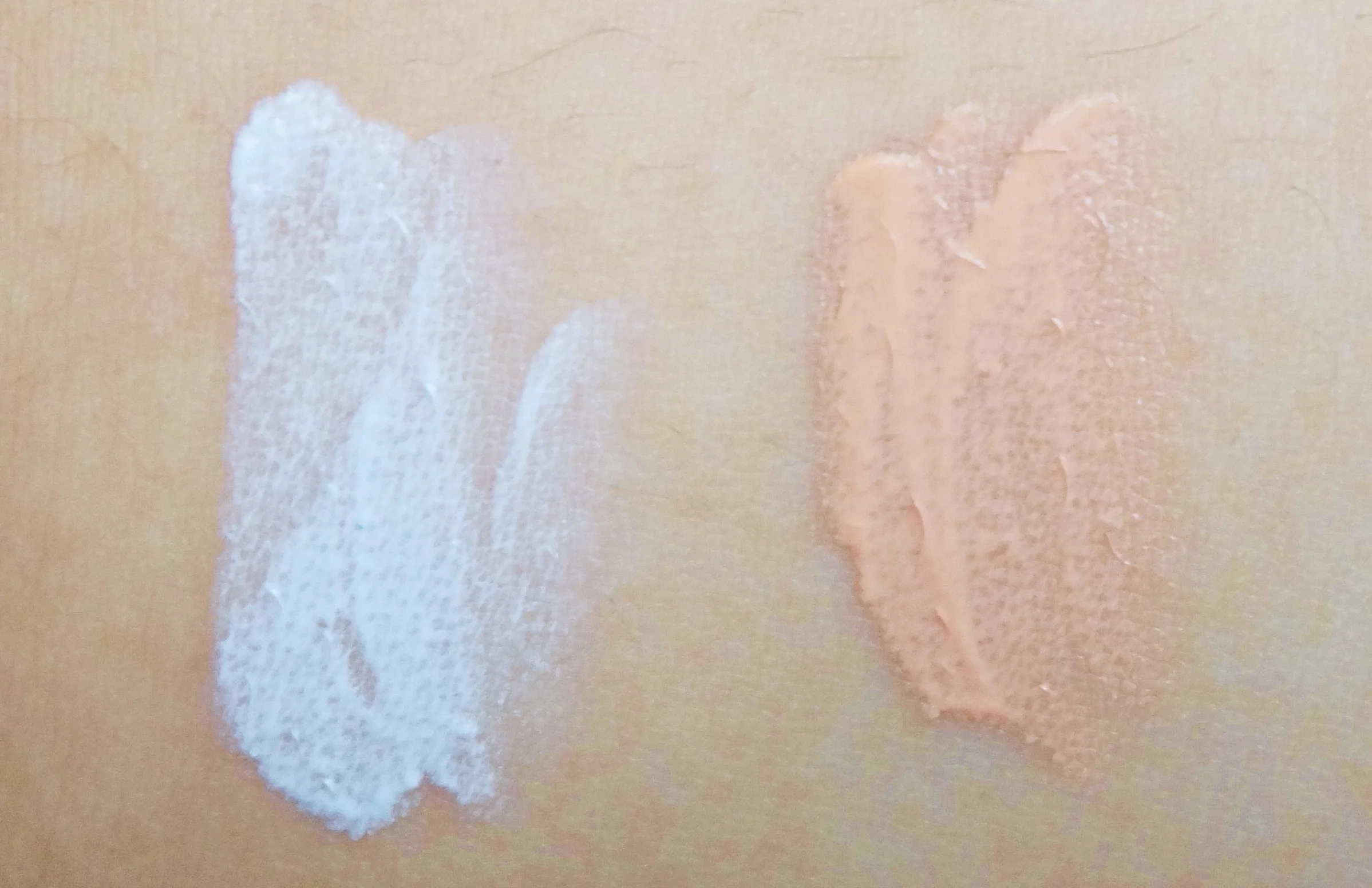 I have two here, the Blue and the Peach, both brightening bases. The Blue helps to take down the yellow tones and sallowness of the complexion, while Peach makes skin look generally healthier and fresher. Both are completely sheer. They leave no visible tint, but you'll notice that your makeup is influenced by them as described above.