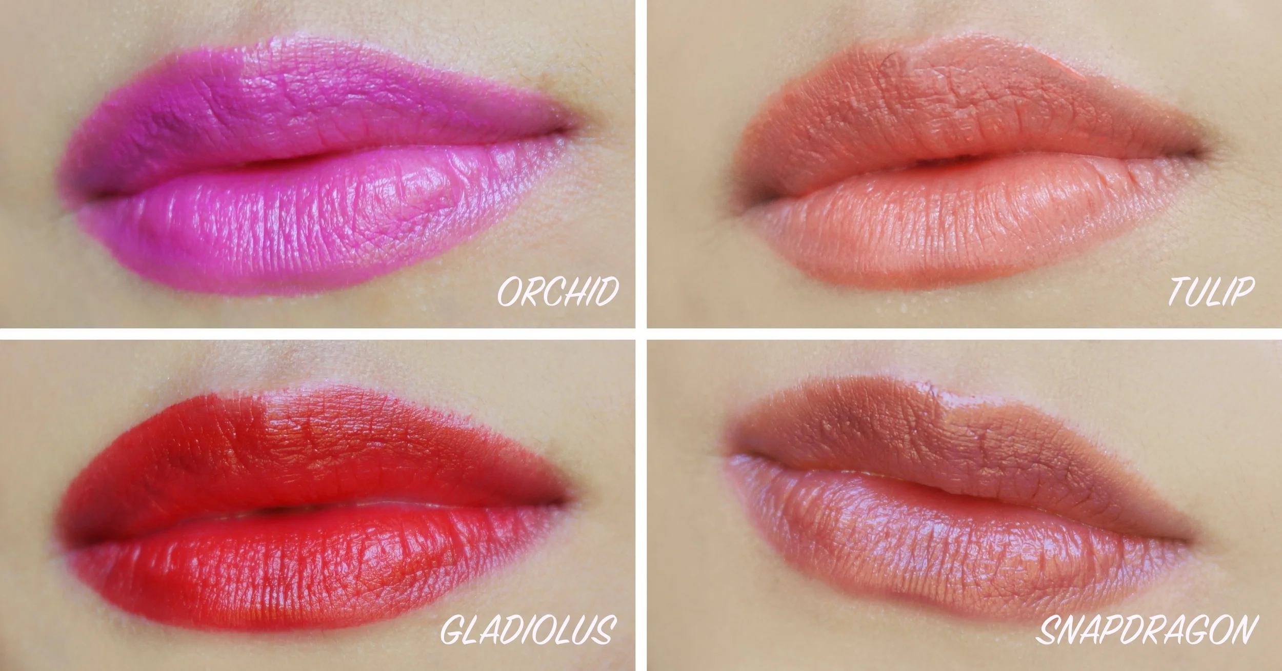 Gladiolus is a bright tomato red while Snapdragon is a terracotta with hints of wine. My favorite out of this set has to be Snapdragon, since it's very edgy and on-trend. It also works well with my medium skin and hair. ^_^