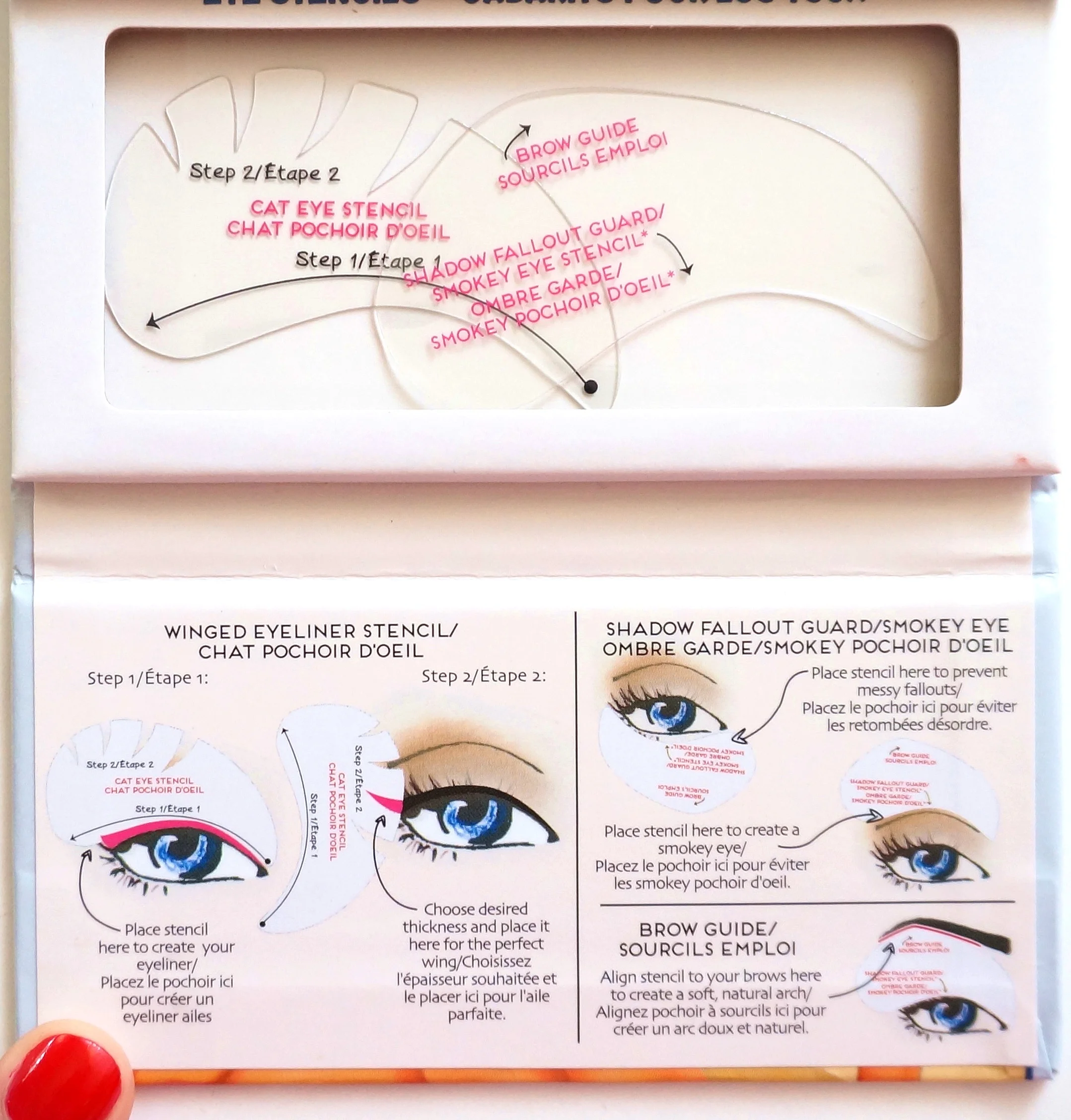 Okay, I find the stencils super cool since you can use them to create a cat eye, a good eyebrow arch, for creating a gradient smoky eye, and even for catching eyeshadow fallout. If you're a newbie they're excellent guides to get started, but if you're advanced these are just a hassle to use. I love them for catching shadow fallout since I just leave them under my eye till I'm done. Otherwise I can do my own cat eyes thank you very much.