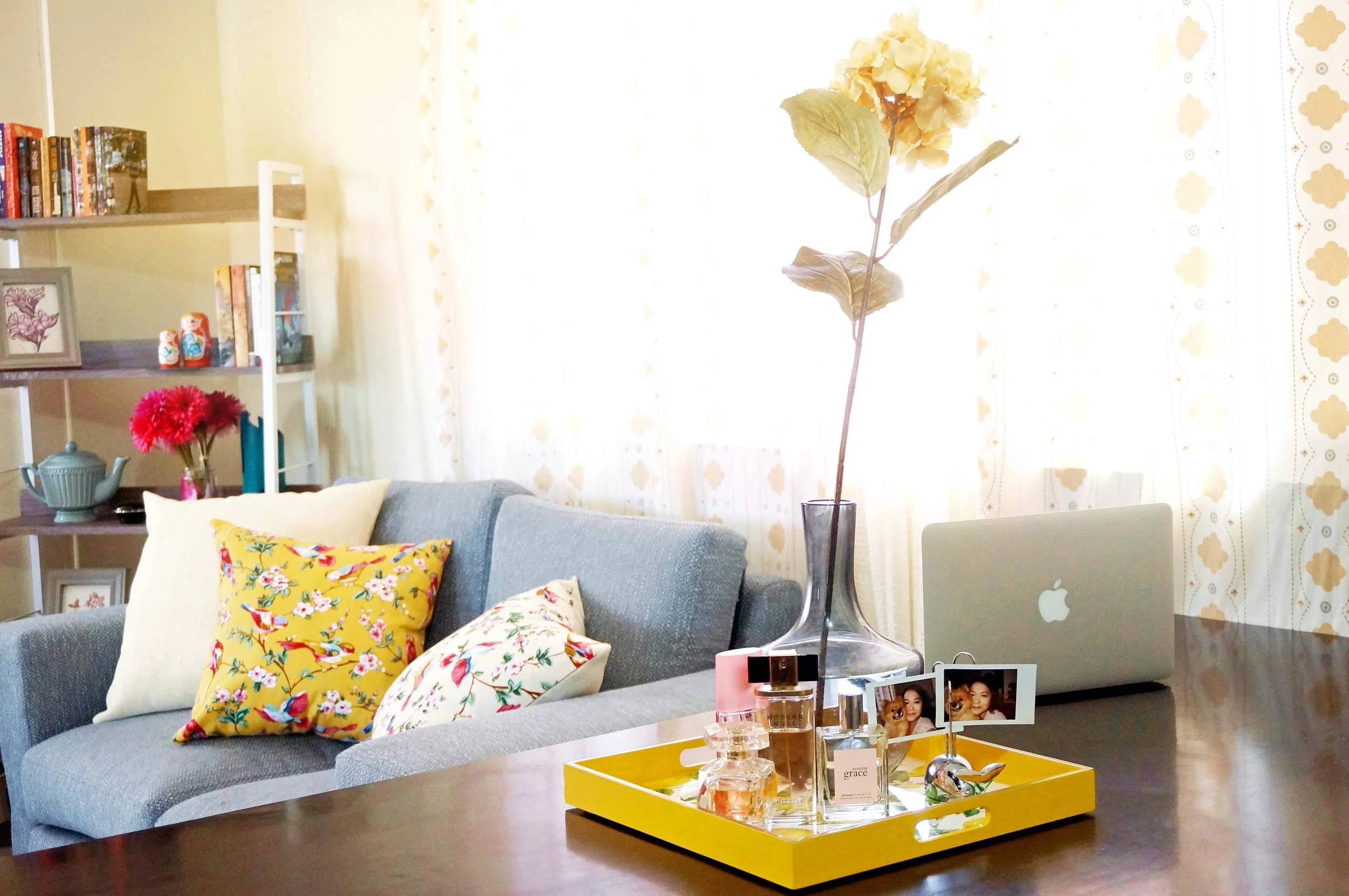 I got the yellow tray in Landmark for like 500 bucks and it's perfect! Aside from housing a vase and some polaroids, I also placed a few of my fave perfumes here so that I never forget to wear one right before I leave. The problem with rushing out is that I neglect to wear a scent sometimes - it irritates me to no end as I feel naked without perfume. With this new set up though, I'm always visually reminded to smell great. ^_^