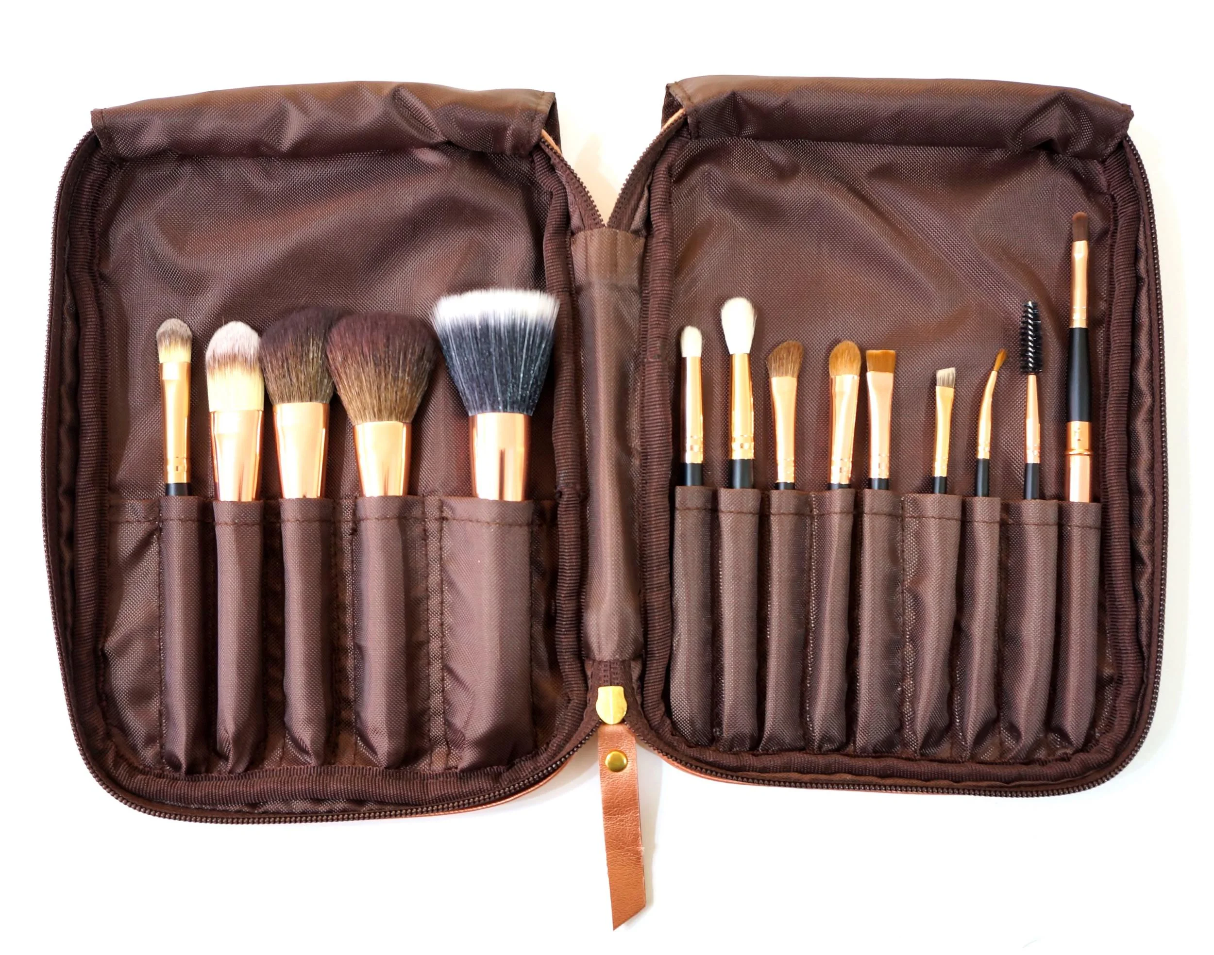 Moving forward, this month's gift is pretty exciting! The lucky CoM for June will receive the latest Charm Travel Pro Set in the rose gold case. It contains 14 brushes for the face, eyes, and lips, and is perfect for travelling or even for professional work. The handles are short, for compactness, but the brush heads are about the same as full-sized ones. The case is lovely too! It has pouches on the inner flaps and has a handle so you can work comfortably while holding it.