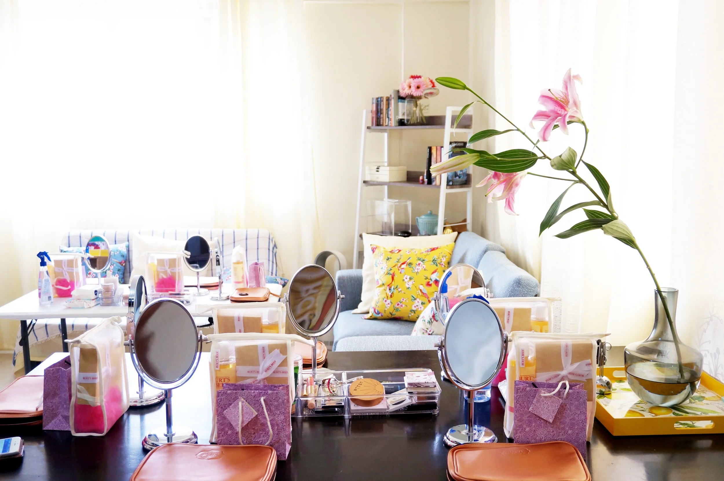 The Set Up. I spent a lot of time thinking about how to arrange my place to accommodate the attendees. I also spent a couple of weeks going back and forth the home section of different malls just to get what I need! Pretty pleased with the results, as the place looked homey yet geared up for some serious makeup business.