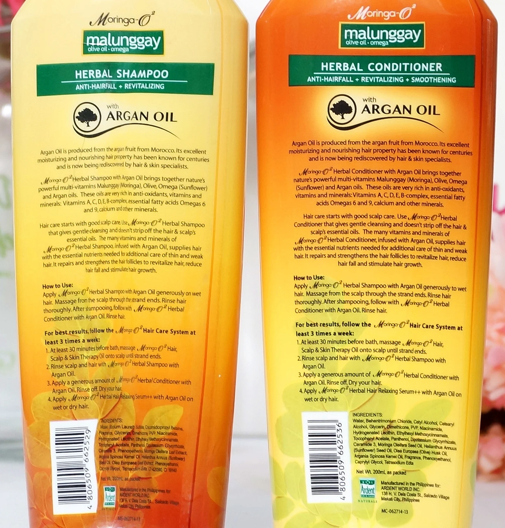 My favorite is the Moringa-O² Herbal Shampoo with Argan Oil (P180 for 200ml). This is a clear light green shampoo that gently cleanses hair and has a sweet fruity floral scent. Unlike other clear shampoos, this doesn't make my hair feel like a bush once it dries. It softens like a creamy shampoo but without the heaviness of that type of formula.