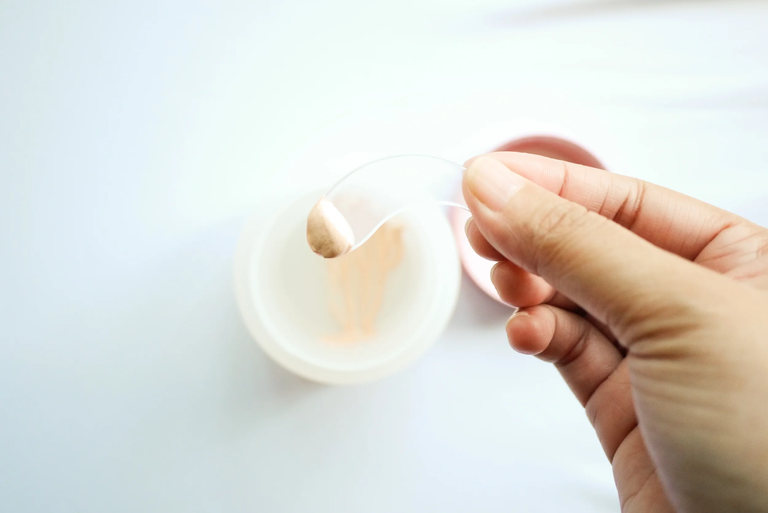 Step 1: Prepare a clean jar and spatula for mixing. If you don’t have one of those portable travel jars, recycle an empty skincare pot. Don’t forget to wash your hands!