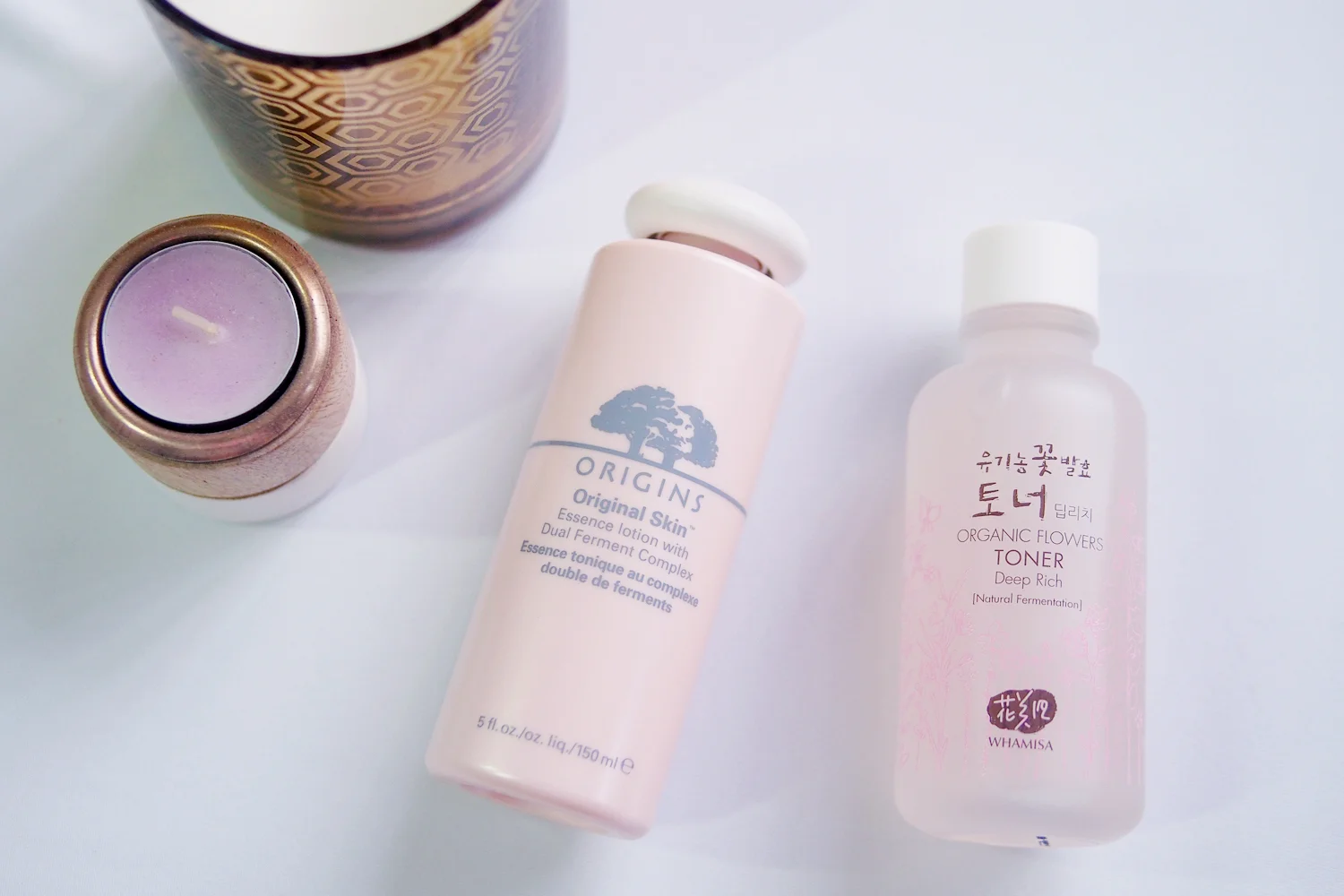 An important reminder before trying this technique: check that your toner is alcohol-free, otherwise it can actually increase the dryness of your face instead. Hydrating toners or hybrids like essence toners and skin lotions are the best for the job but again, look at the ingredients list to be sure. For this test, I used the Origins Original Skin Essence Lotion with Dual Ferment Complex (~P1,600 at Origins Counters) and the Whamisa Deep Rich Organic Flowers Toner (P1,320 via Althea Korea).