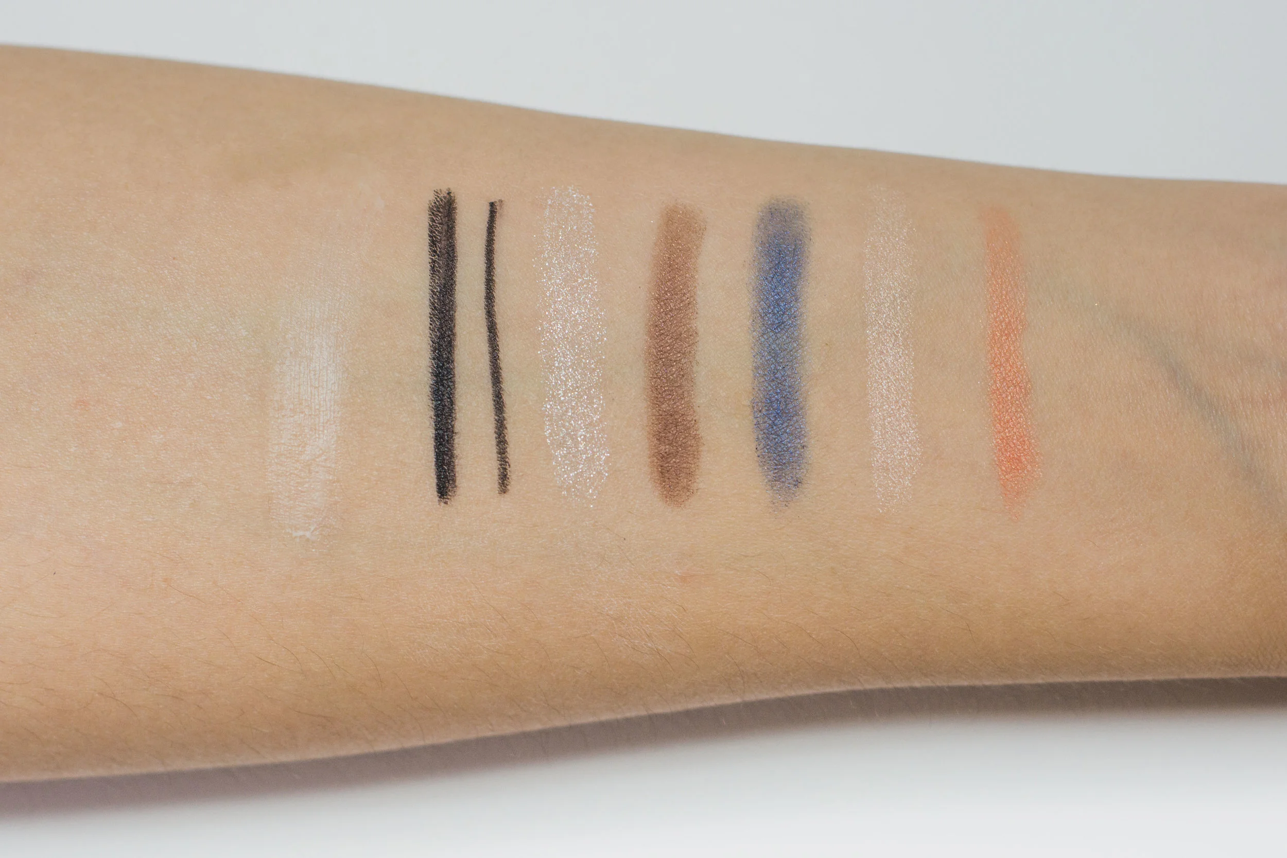 Swatches, from left: Lasting Multi Eyebase, Creamy Touch Liner in 01 Deep Black, and Perfect Styling Eyes #15