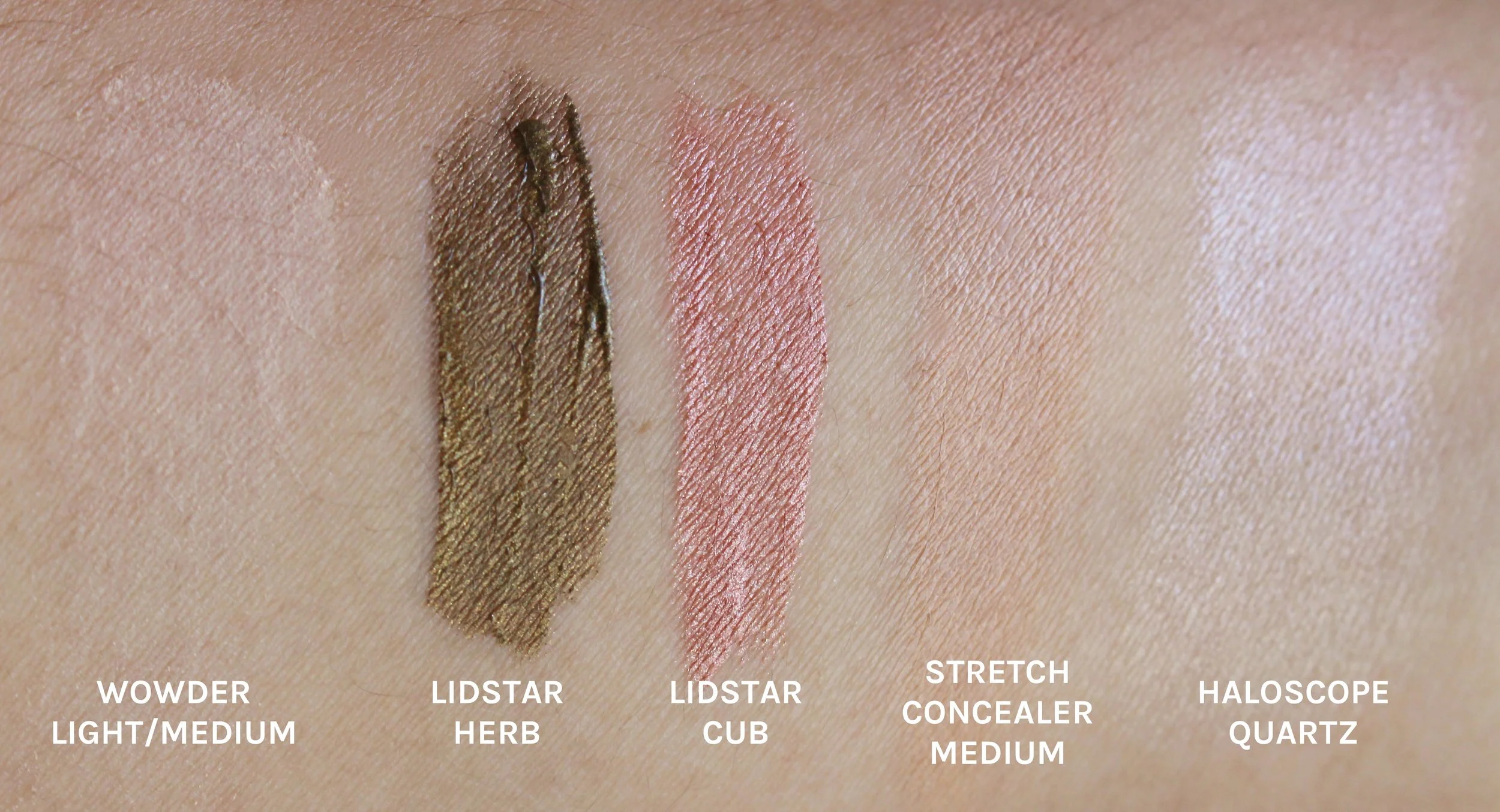I was pretty excited about this one because I love cream shadow! It simplifies my routine and a single color can look good fast. I got Cub, which is a pretty rose gold, and Herb, a golden green. These are...sheer. I need two or three layers to get a shade that looks like the color it's supposed to look like. These are great as eyeshadow primer though since they stick on the lids pretty well during the day, but alone, they take a bit of work. It has this wet texture that takes a while to dry so you have to wait a bit before the next layer. In terms of blending, the color "breaks" easily so if you apply too much pressure in one area your finger tip will leave a mark.