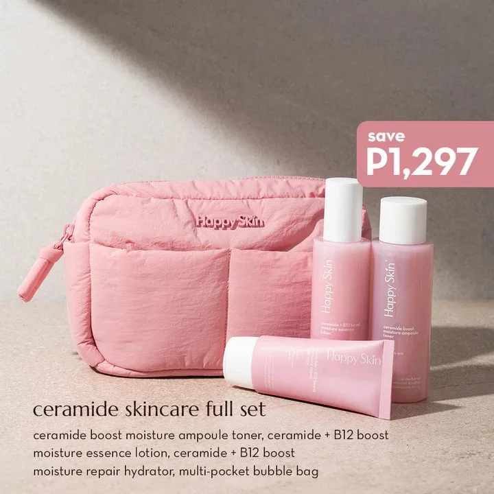 Looking for something to help keep your skin barrier healthy? Happy Skin’s Ceramides + B12 Boost Skincare Series has great options to fill the gap in your skin care lineup, which include an ampoule toner, essence lotion, and repair hydrator (moisturizing cream). Restore your skin barrier with the help of strengthening Ceramides, brightening Vitamin B12, and hydrating Hyaluronic Acid.