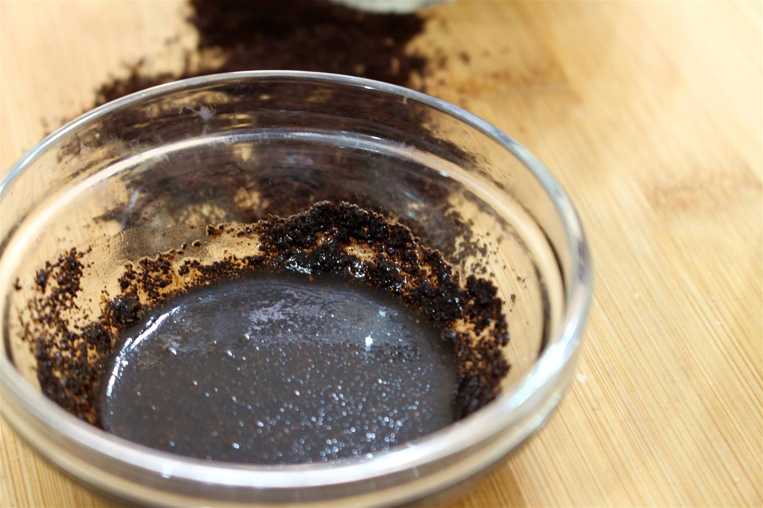 To exfoliate, simply wring out the excess moisture from the grounds, mix a little bit of oil to get more glide onto the skin, then start scrubbing away. Tip: coconut oil is readily available and smells amazing with coffee! You can also use olive oil, and add a few drops of fragranced oils to set the mood.