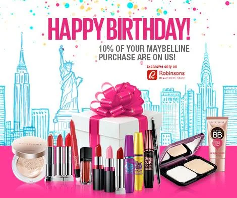 Get yourself the perfect gift for your special day! If you’re celebrating your birthday this February, you get an extra treat, care of Maybelline Philippines! Receive 10% off your favorite regular priced products from Maybelline in all Robinsons Department Stores nationwide from February 1 to 28. Don’t forget to bring a valid ID with a picture and your birthday on it to avail of this exclusive promo! It’s definitely time to #TreatYoSelf.