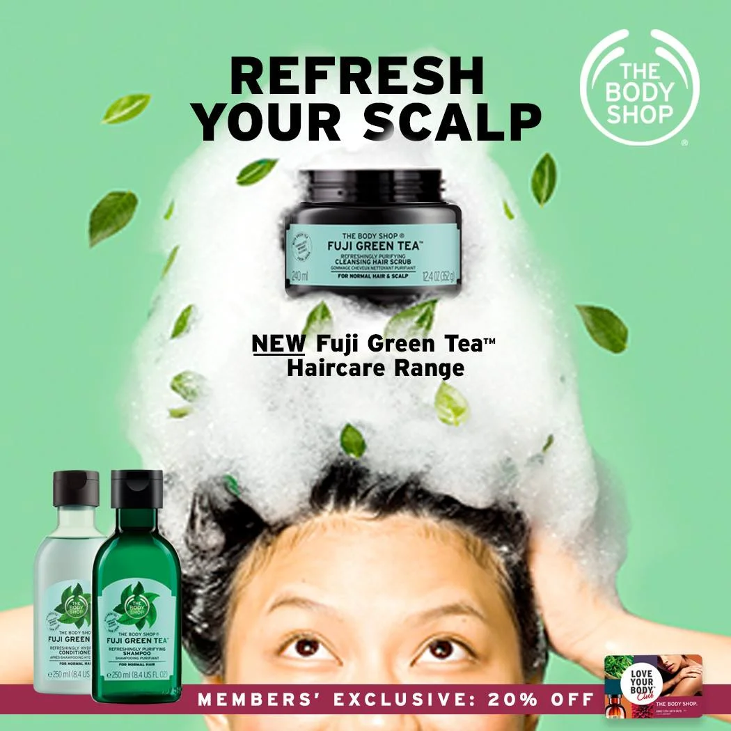 Don't you just love it when the shop you frequent greets you by name and knows your faves? It's even better when you get to try their brand new releases at a special discount! The Body Shop is treating Love Your Body Club members to 20% off the Fuji Green Tea Haircare range. It's a great chance to try the Fuji Green Tea Shampoo, Conditioner, and Cleansing Hair Scrub (we are so curious about this unique idea!) at a special price. The promo runs until July 18 only so better head over and pamper your tresses with a fresh, new treat!