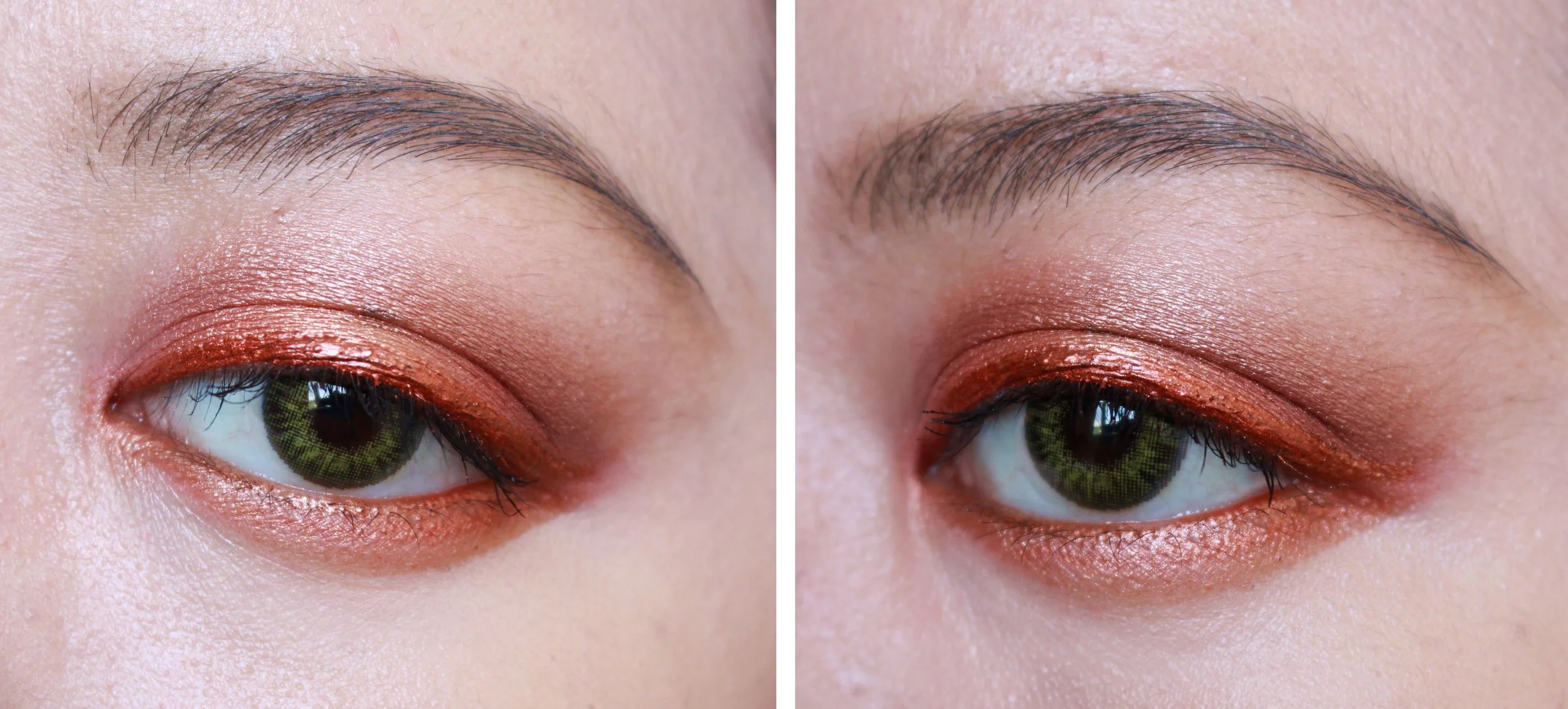 Here's a hot look for you! I used the first six shades from the left here and paired it with a metallic eyeliner.