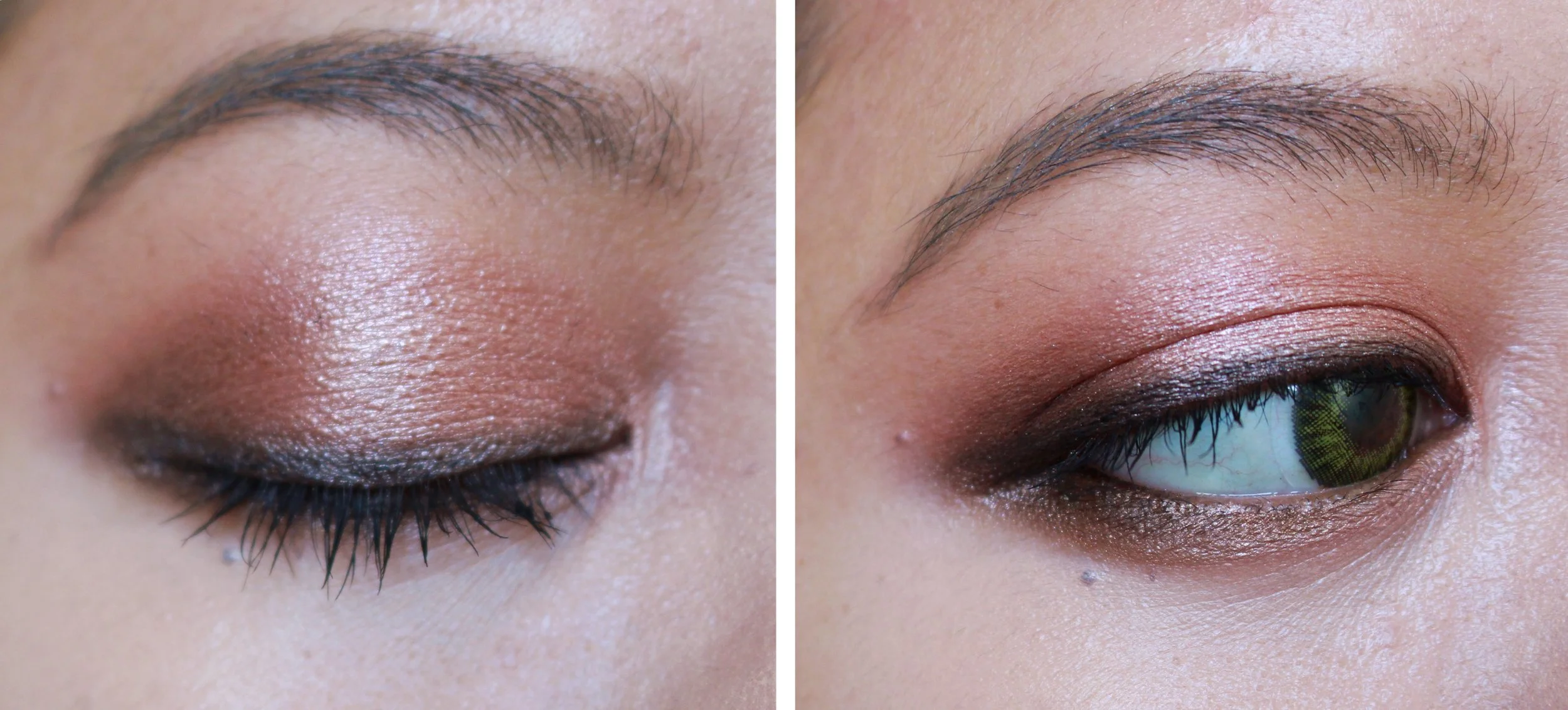 This one's cooler, more subdued. I blended Rose Gold on my lids, Rhodium on the outer lids, and Brass on the crease. I then used Steel to line my eyes. See how dark it is? It can be even more opaque if used wet.