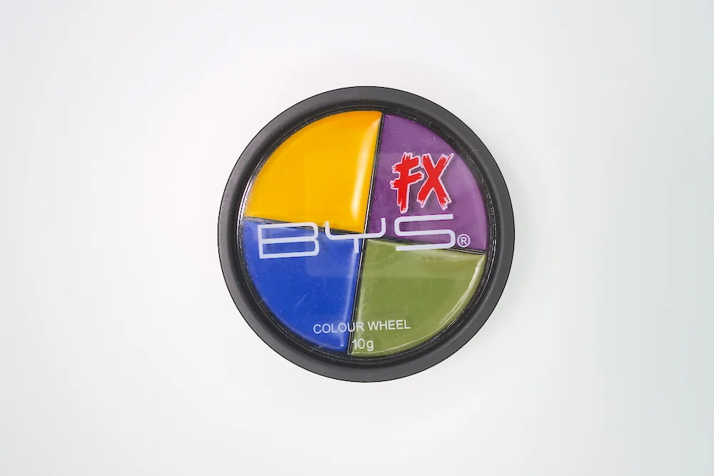 There are also other Colour Wheel Palettes for Burns (black, various reds), Cuts & Scratches (violet, black, red, yellow), Fantasy (red, teal, silver, pink), Ghastly (red, black, lilac, white), and Zombie (moss, white, black, lilac.)
