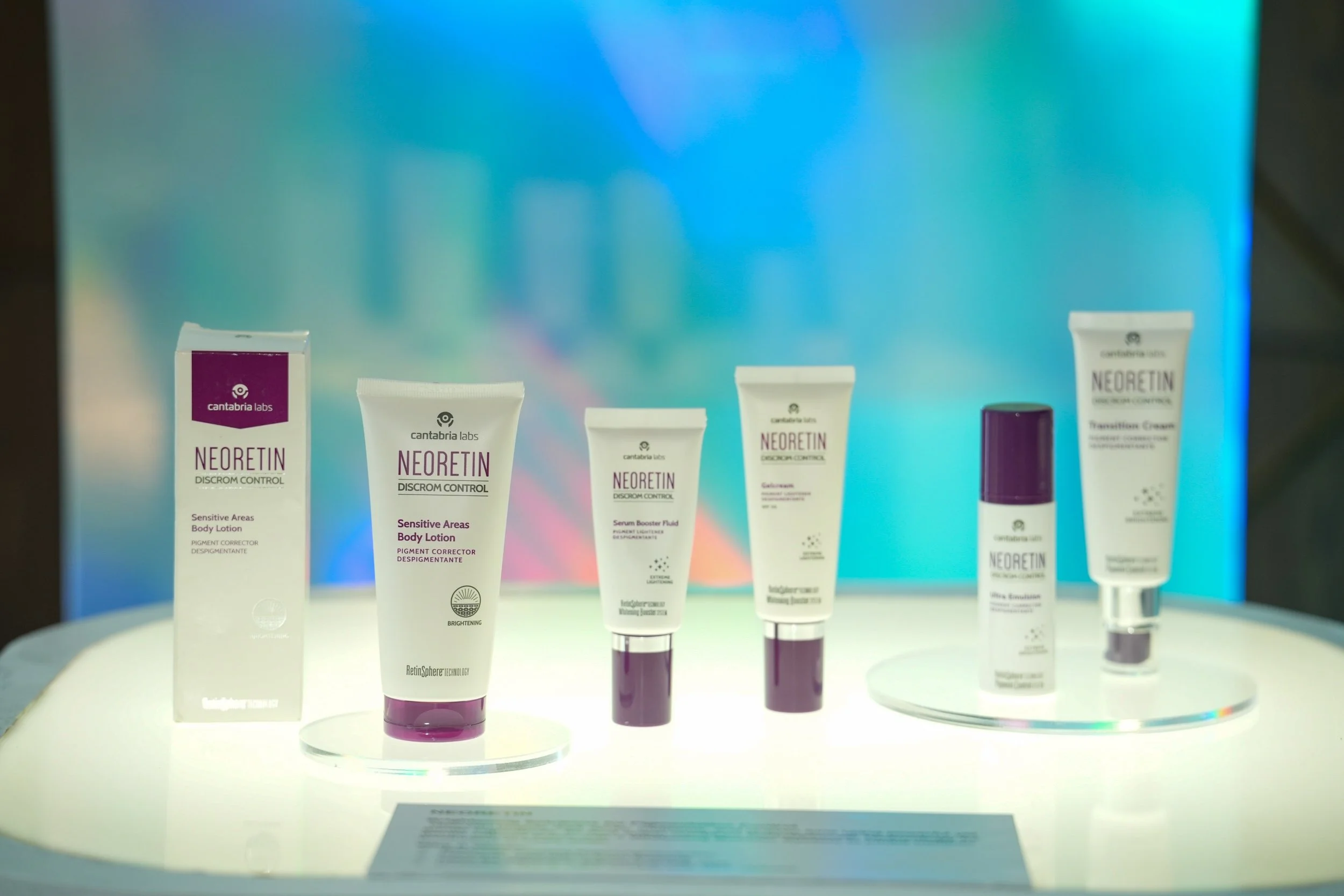 Neoretin is their pigment control line with products that target the primary causes of dark spots with formulations for different areas of the skin. For targeted pigment control in sensitive areas, Cantabria Labs has the Discrom Control Sensitive Areas Body Lotion, a lotion with niacinamide, azelaic acid, tranexamic acid, and featuring RetinSphere® technology.