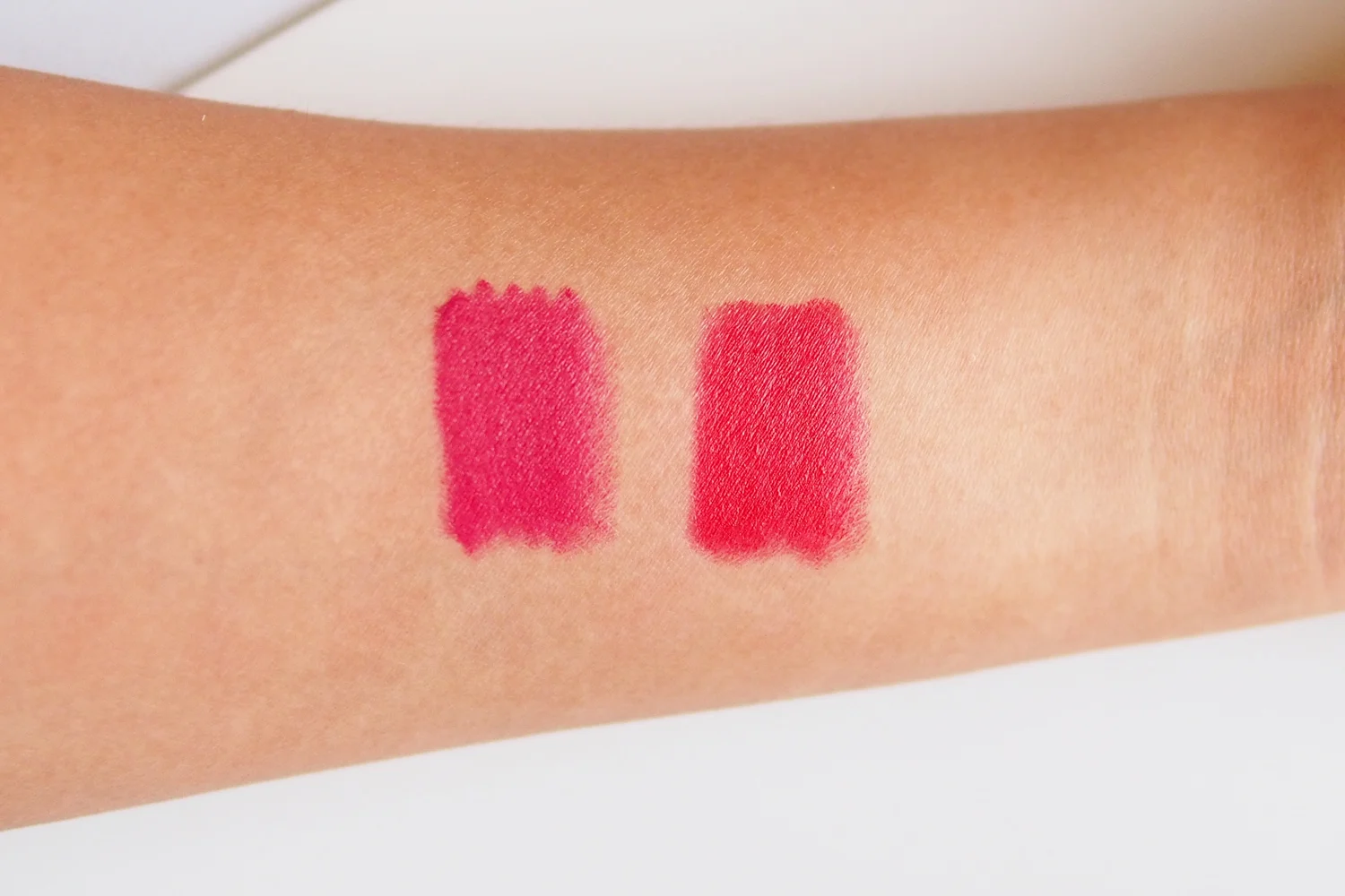 These are the two shades of the Catrice Matt Lip Artist 6hr Lipsticks I got to try: HibisKiss-Proof and Fashion REDitorial. (Editor's Note: Omg love the punny names! - Liz)