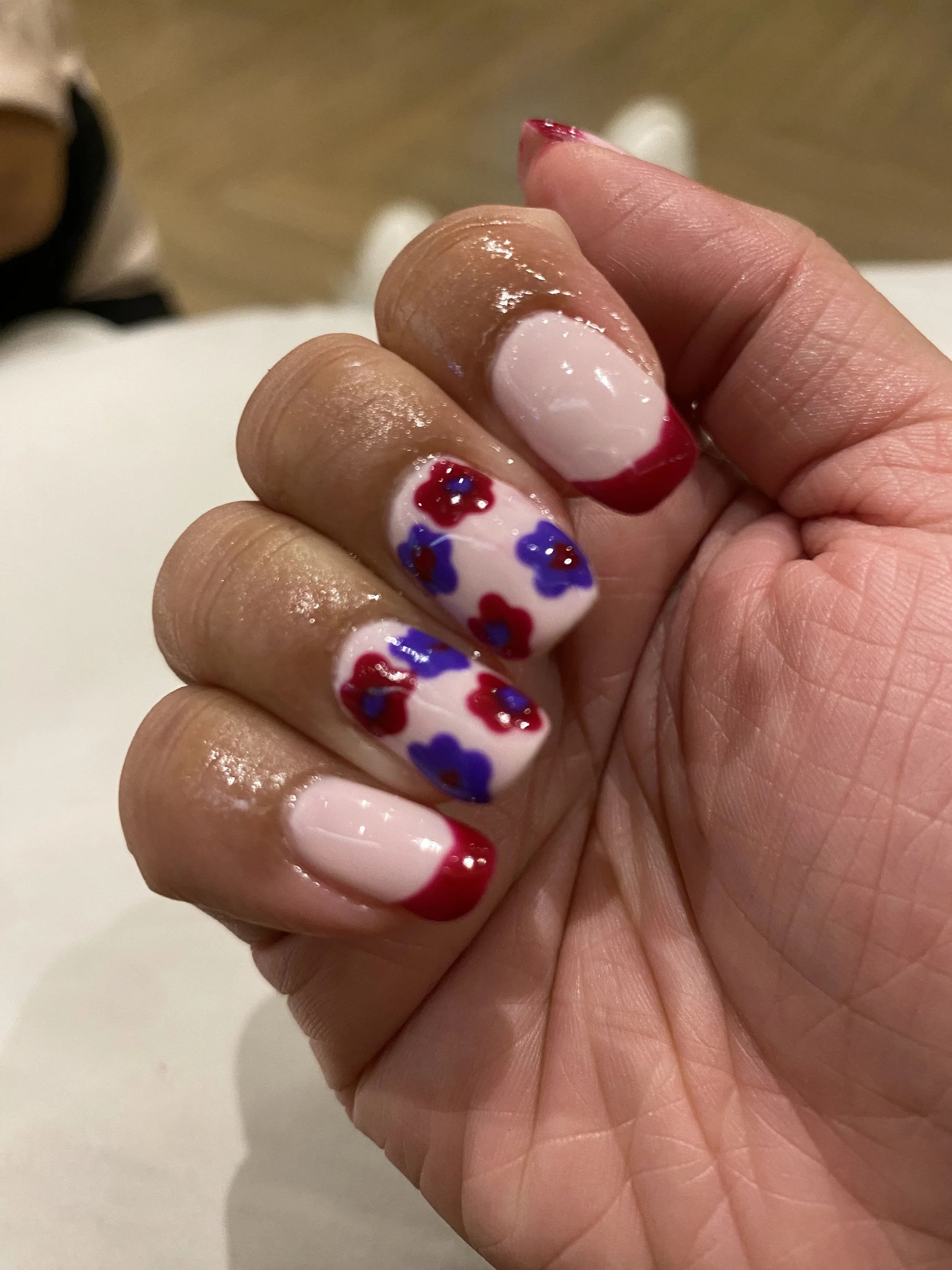 As I sat back, letting the professional work her magic, we settled on a vibrant French tip adorned with floral accents. The finale included a nurturing hand massage, applying a hydrating oil to nourish my nails and cuticles.
