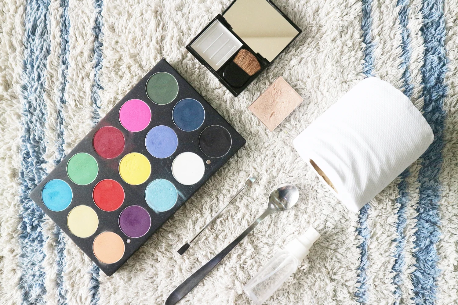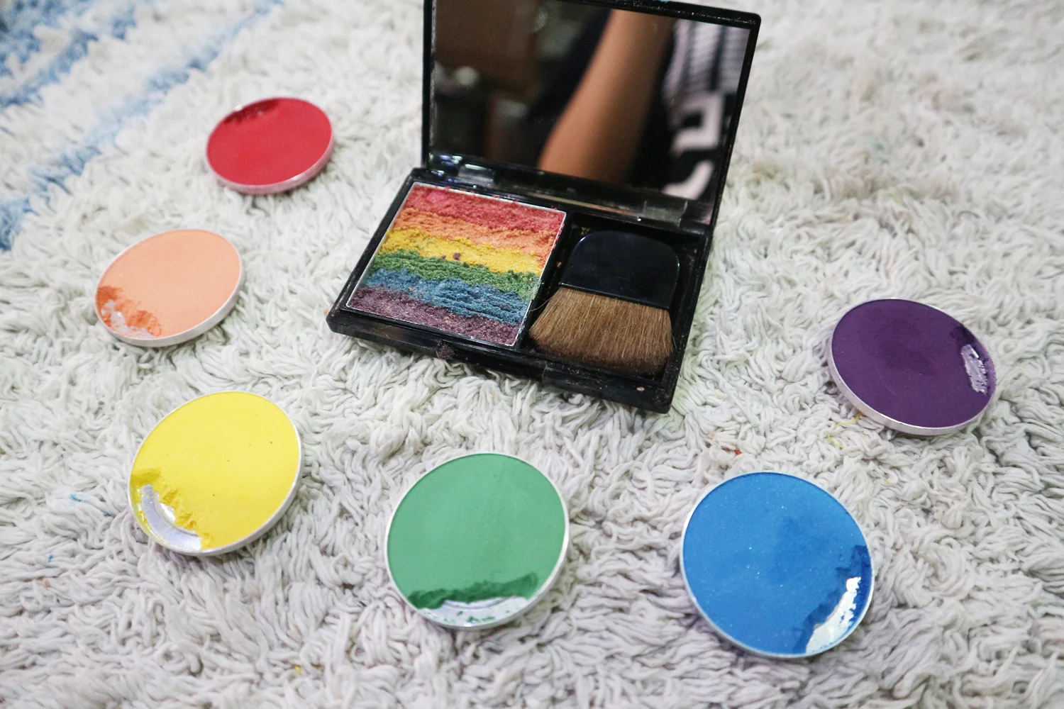 - Eyeshadows or pigments in the shades of the rainbow (you can use a cheap one)