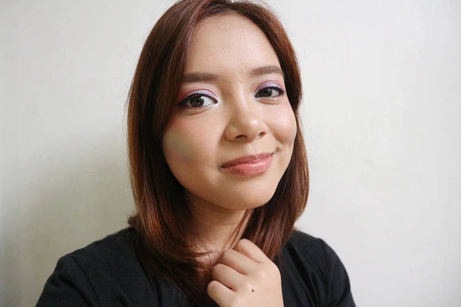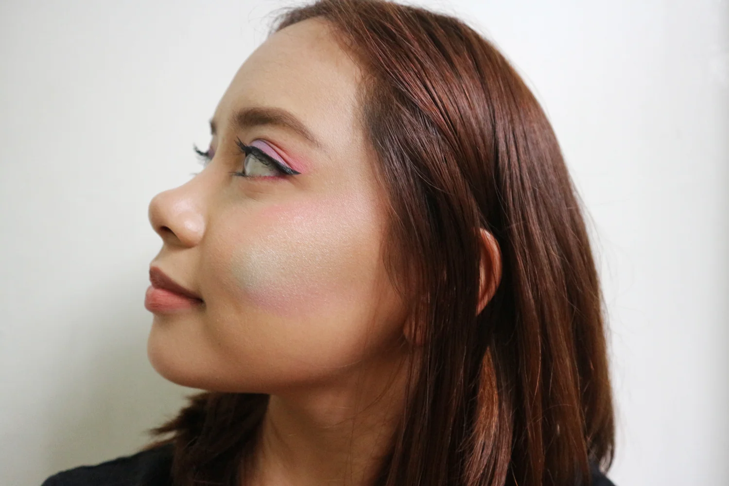 I used a flat top brush to apply it on my face to pick up the pigment evenly. Depending on how pigmented the shadows you used are, you may need a couple of swipes to get the colors to show up.