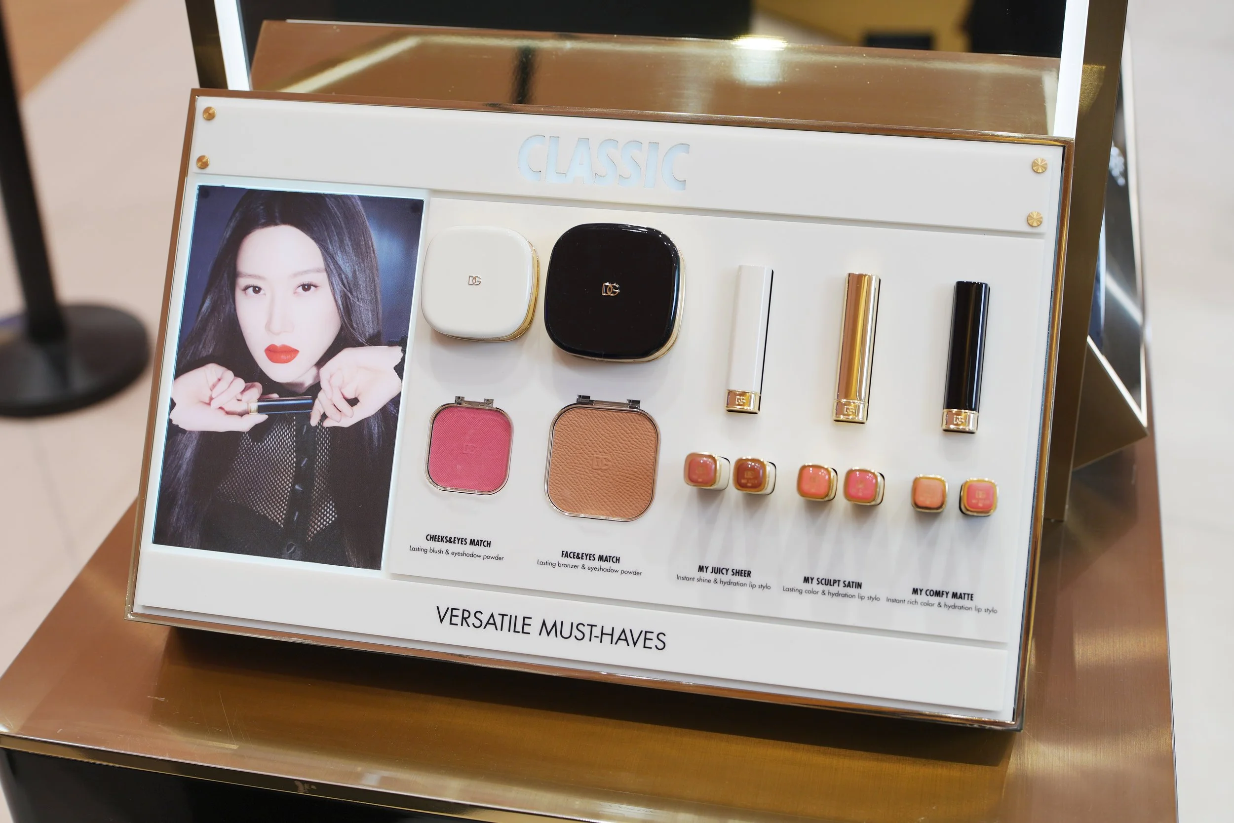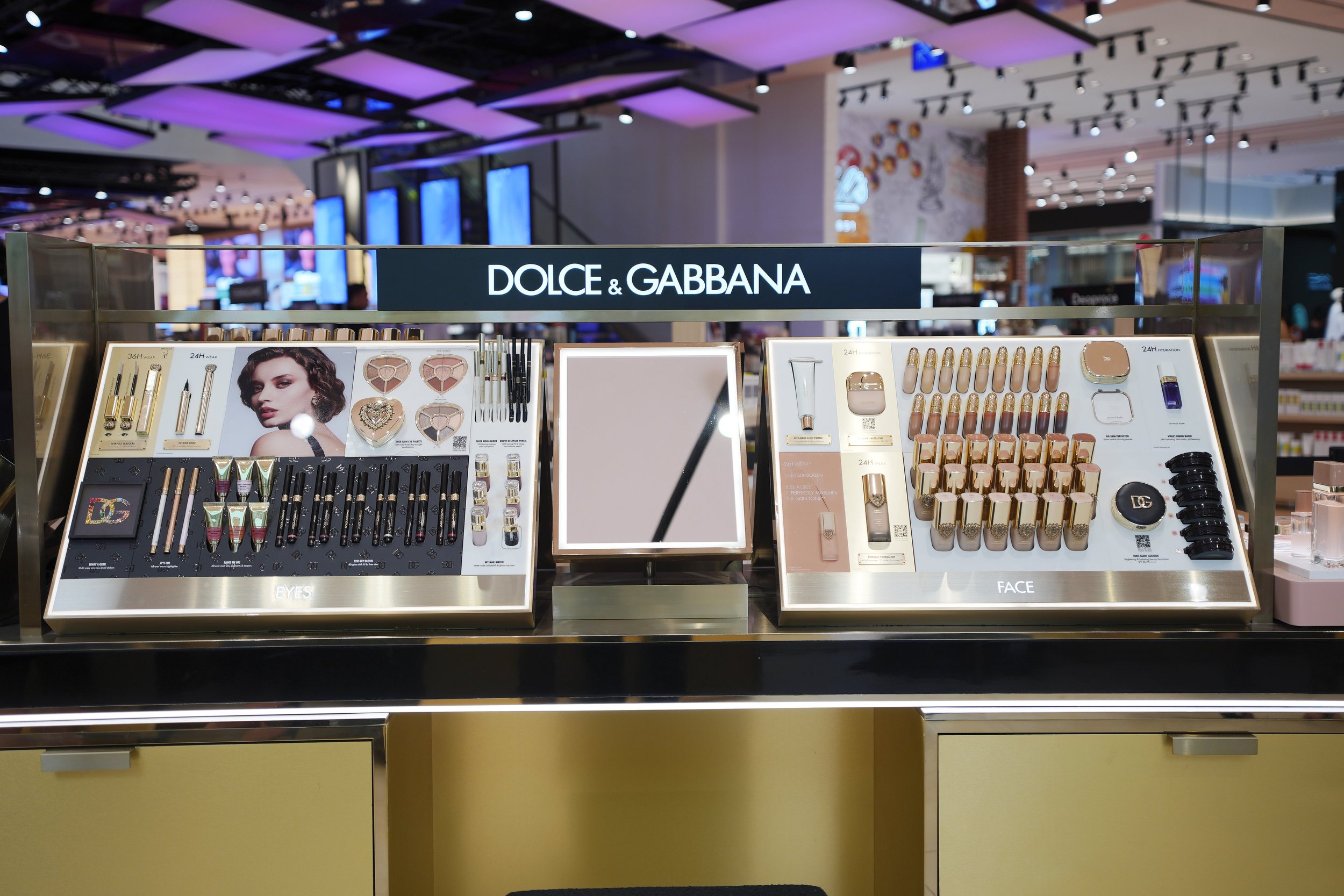 Visuals of Mun Ka-young are also displayed throughout the space. She has been working with Dolce & Gabbana since 2023 as a Global Ambassador, and her presence definitely adds a modern, K-beauty edge to the counter.
