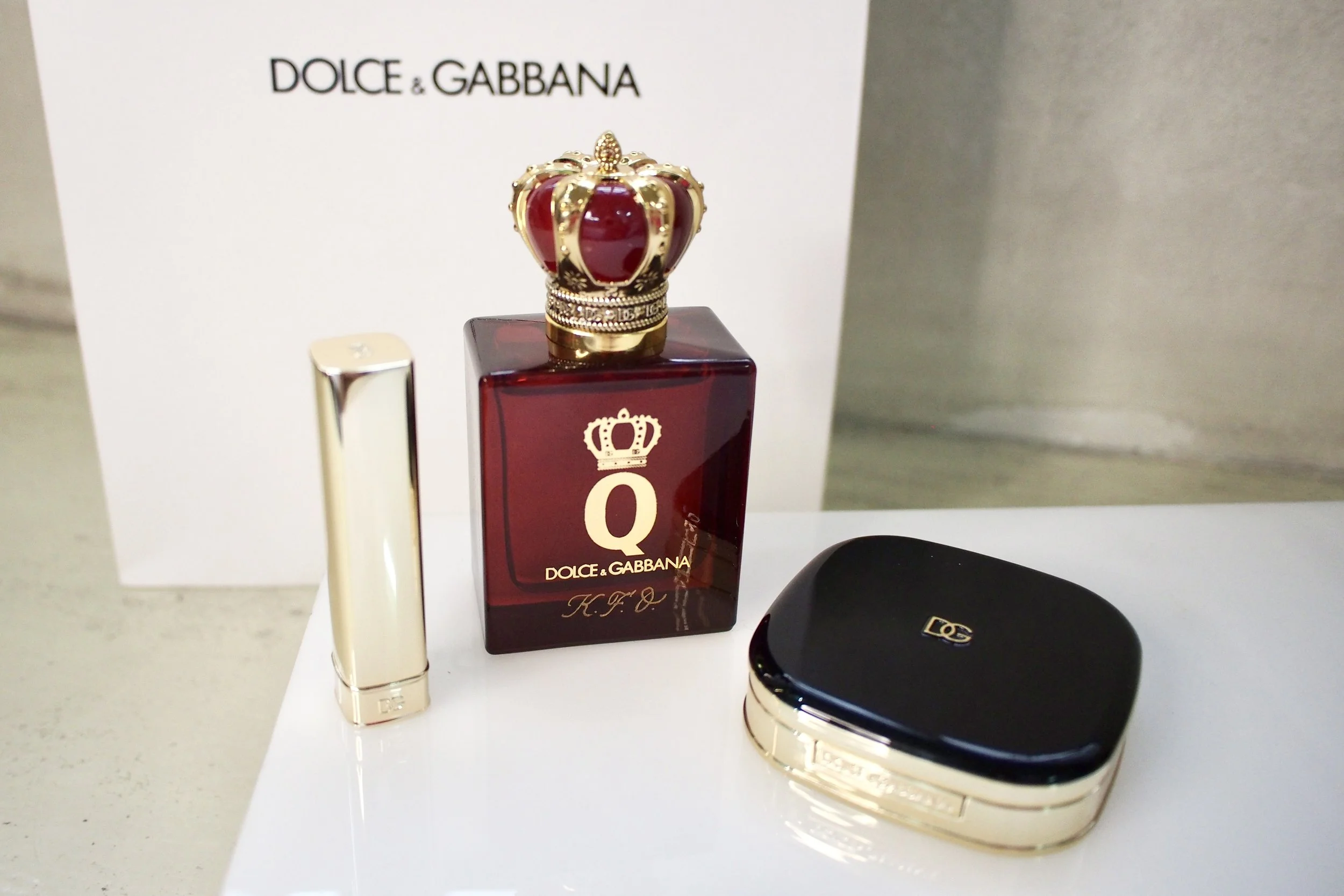 I got the Q by Dolce & Gabbana Parfum, a sweet, woody scent that dries down quite elegantly with notes of candied cherry, jasmine, and vanilla. It strikes a nice balance between playful and polished, so it feels feminine without being overly sugary.