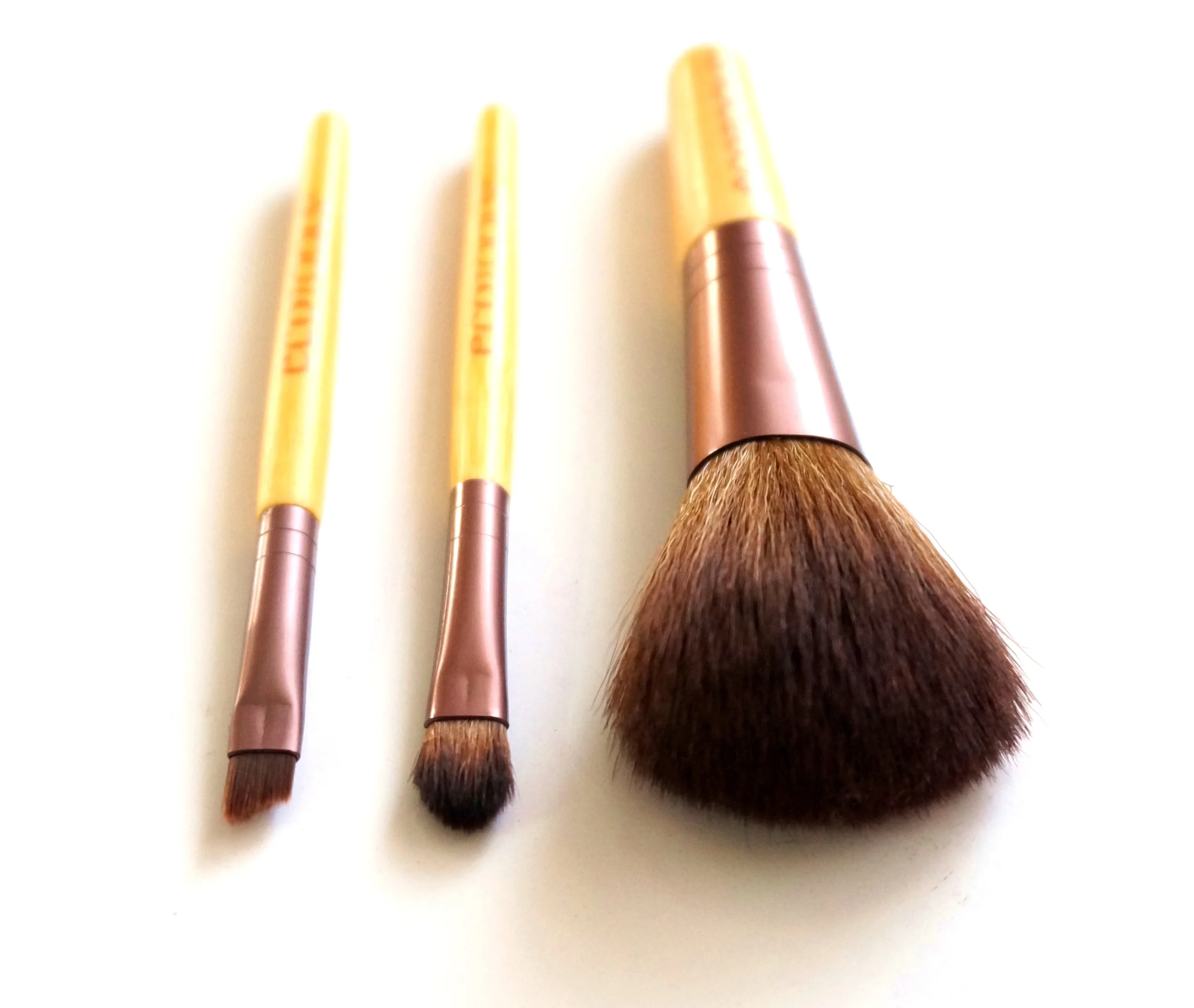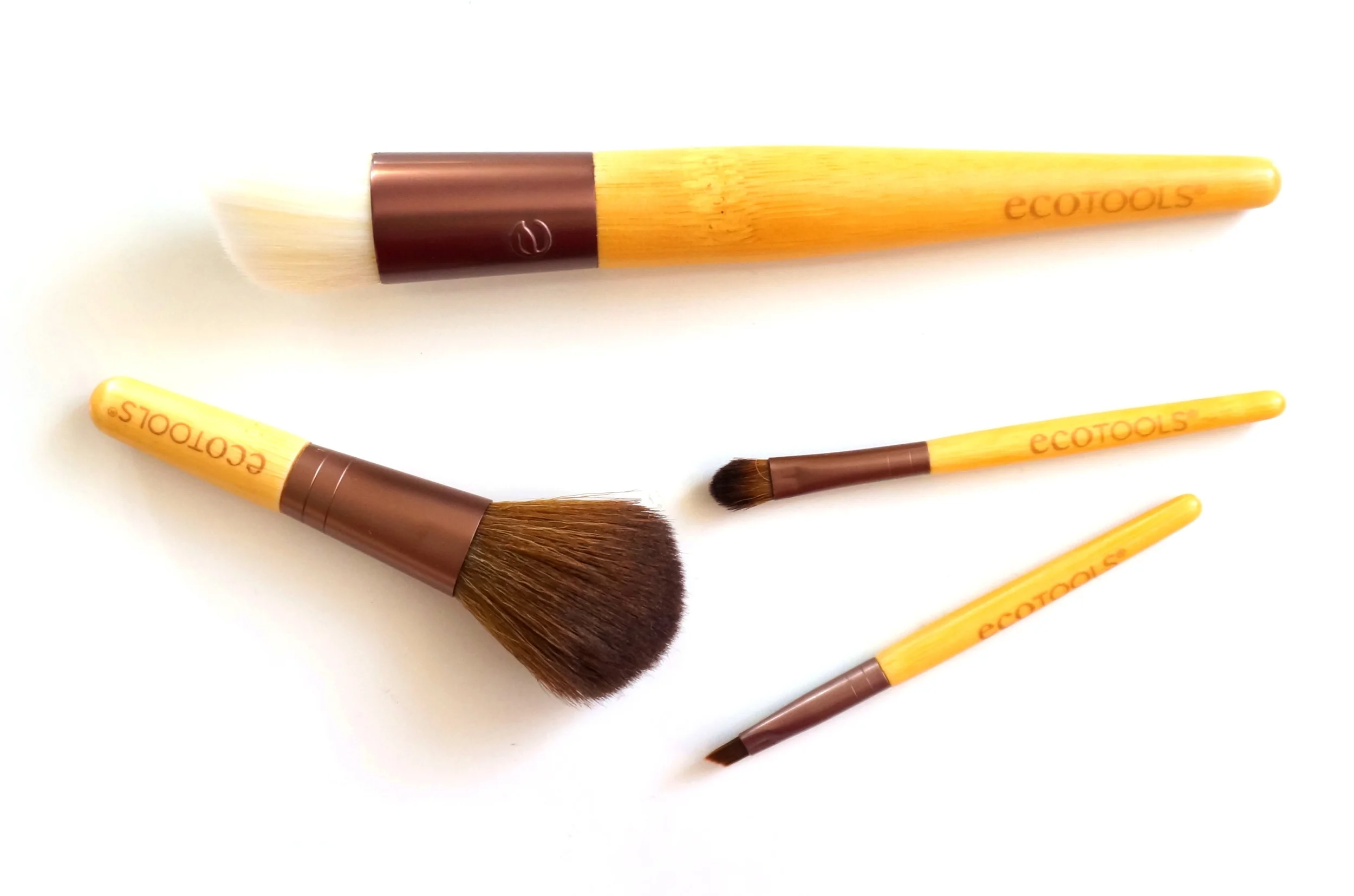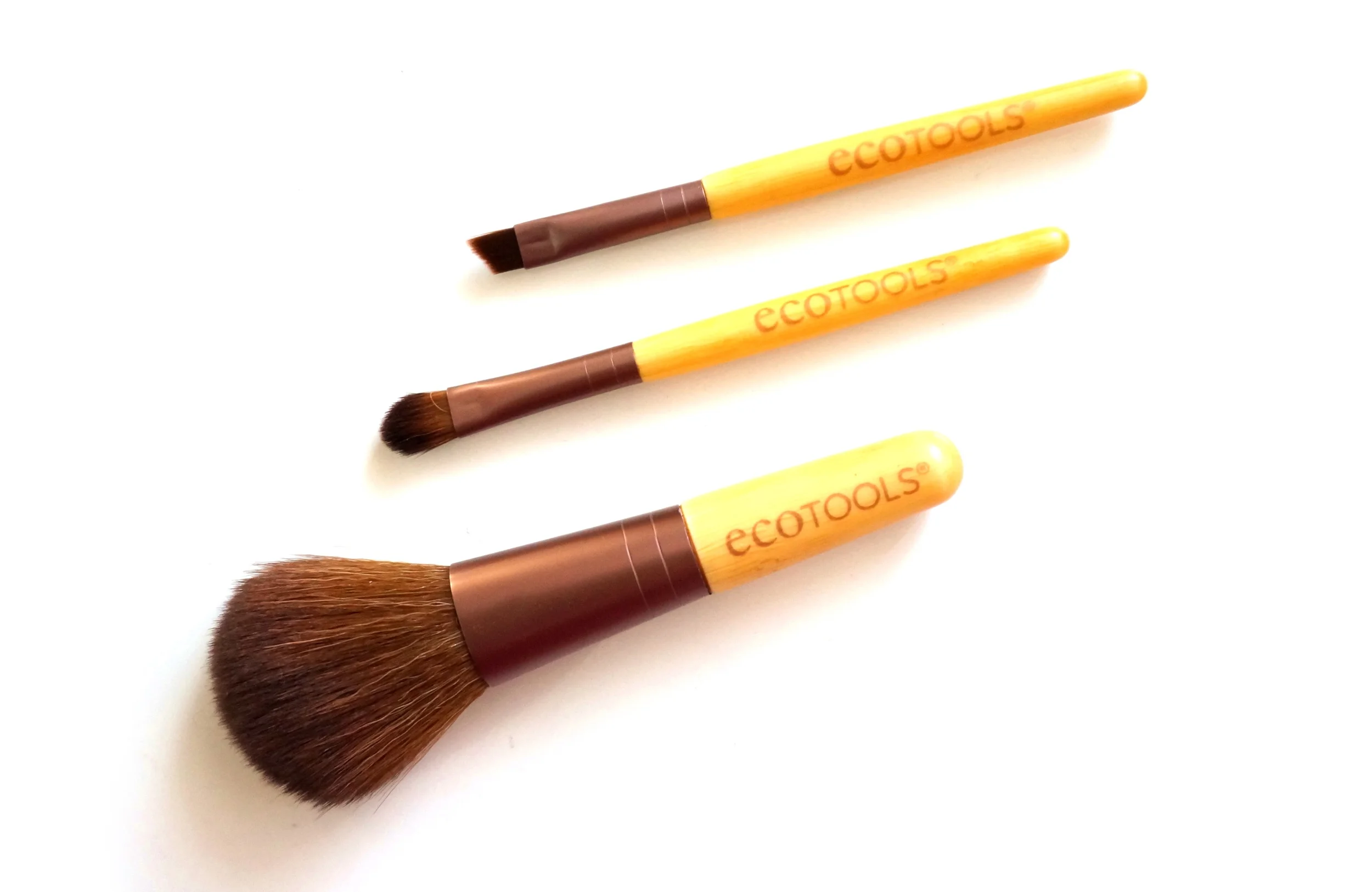 Even if you don't travel, as long as you apply makeup anywhere outside the house, you will need a mini brush set. These things save you a lot of room in your bag and help simplify your routine! I've reviewed a couple of mini sets before, but today I have for you the smallest of them all: the Ecotools Mini Essentials Set (P530 from Kalm Cosmetics).