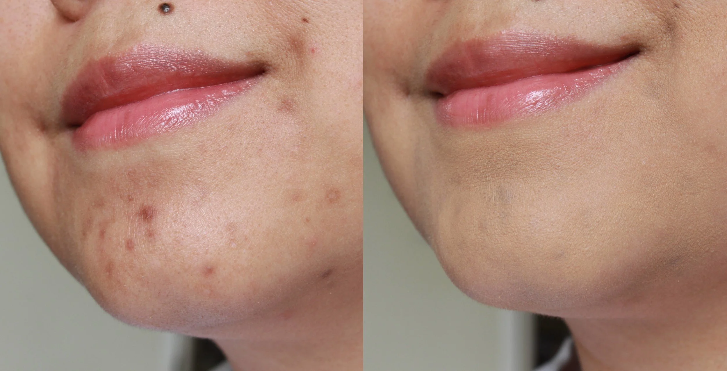 If you've been watching my live videos on Facebook (you should if you haven't yet! I make it a point to show new products and looks a few times a week) then you know I've been plagued by nasty dark blemishes on my chin recently. I had a massive breakout! I love my liquid/cream concealers, but the Ellana works just as well and with much less the effort. Here's proof: