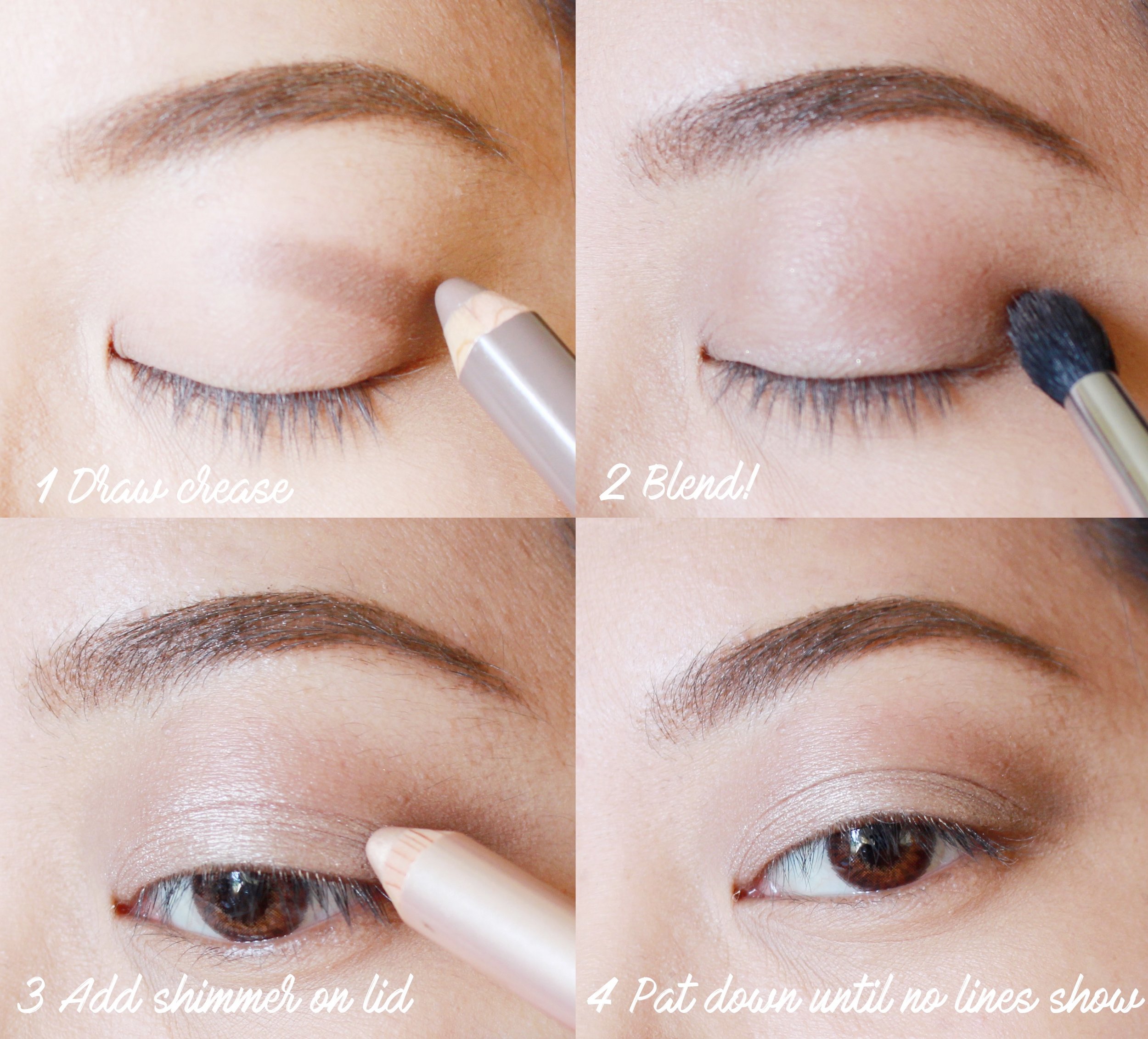 - Step 1: I draw on a thick line on my crease, touching to the outer corner of my eyes. The top line doesn't go beyond half of my eye length.
