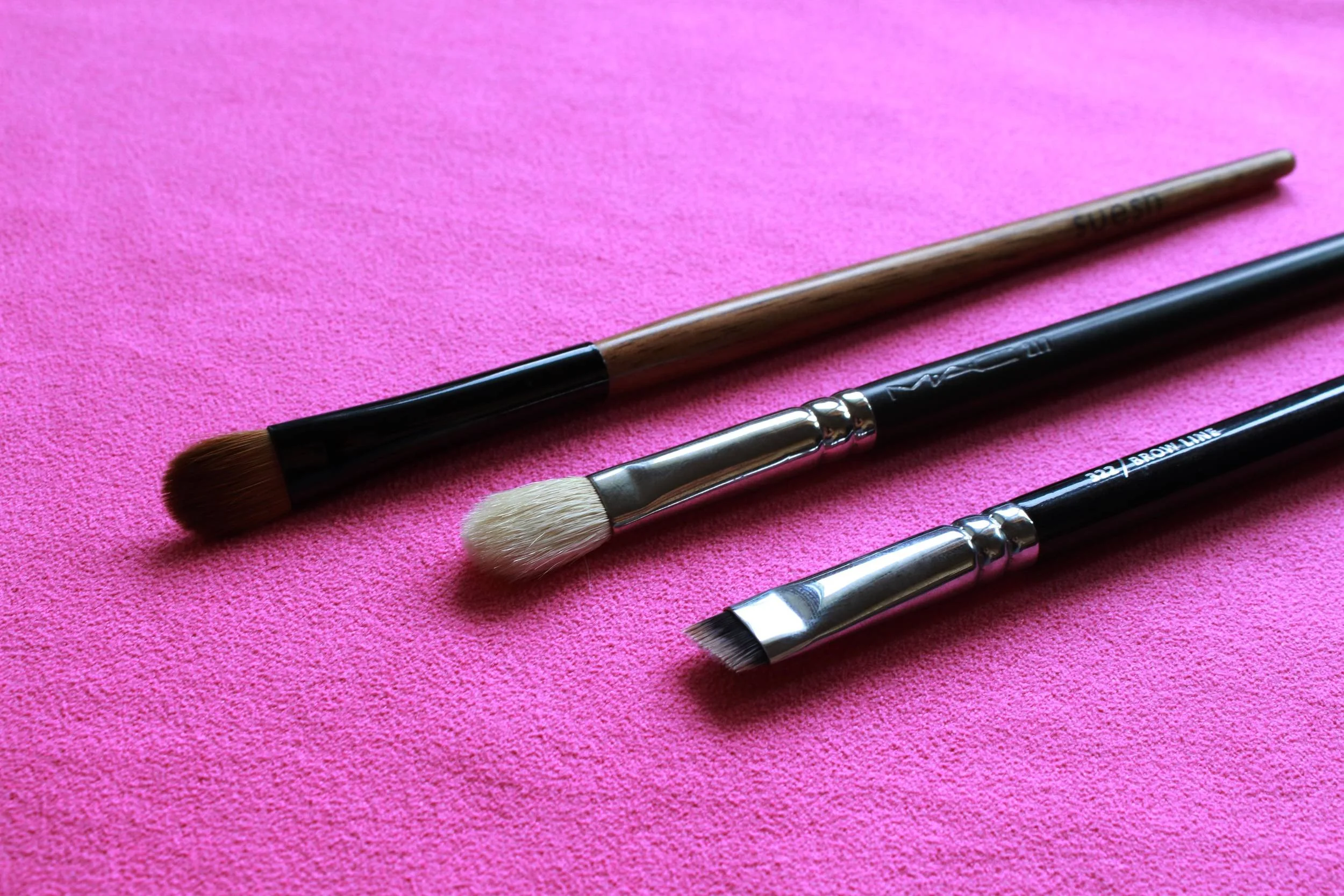 The typical round fluffy brush shape works well, but do you know what works better? A flatter, longer head that's almost like a concealer brush except with natural bristles. This can apply eyeshadow wet or dry and get it as solid as possible. The Suesh Large Eyeshadow Brush (P450 at Suesh.com) performs amazingly well at a reasonable price point.