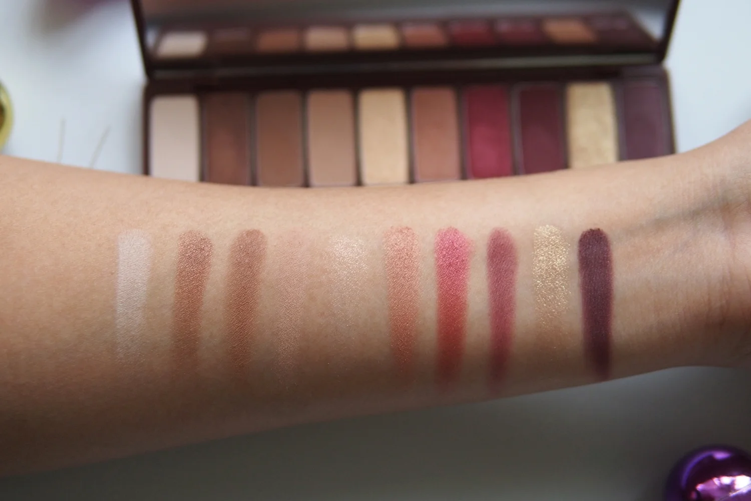 The Pinky Galaxy palette that I have includes cool-toned shades with a touch of pink and deep violets in the selection. I used this palette in the look I shared above. Pigmentation is okay and the sparkle shadow looks subtle on. I wore it during daytime and it didn’t look overboard.