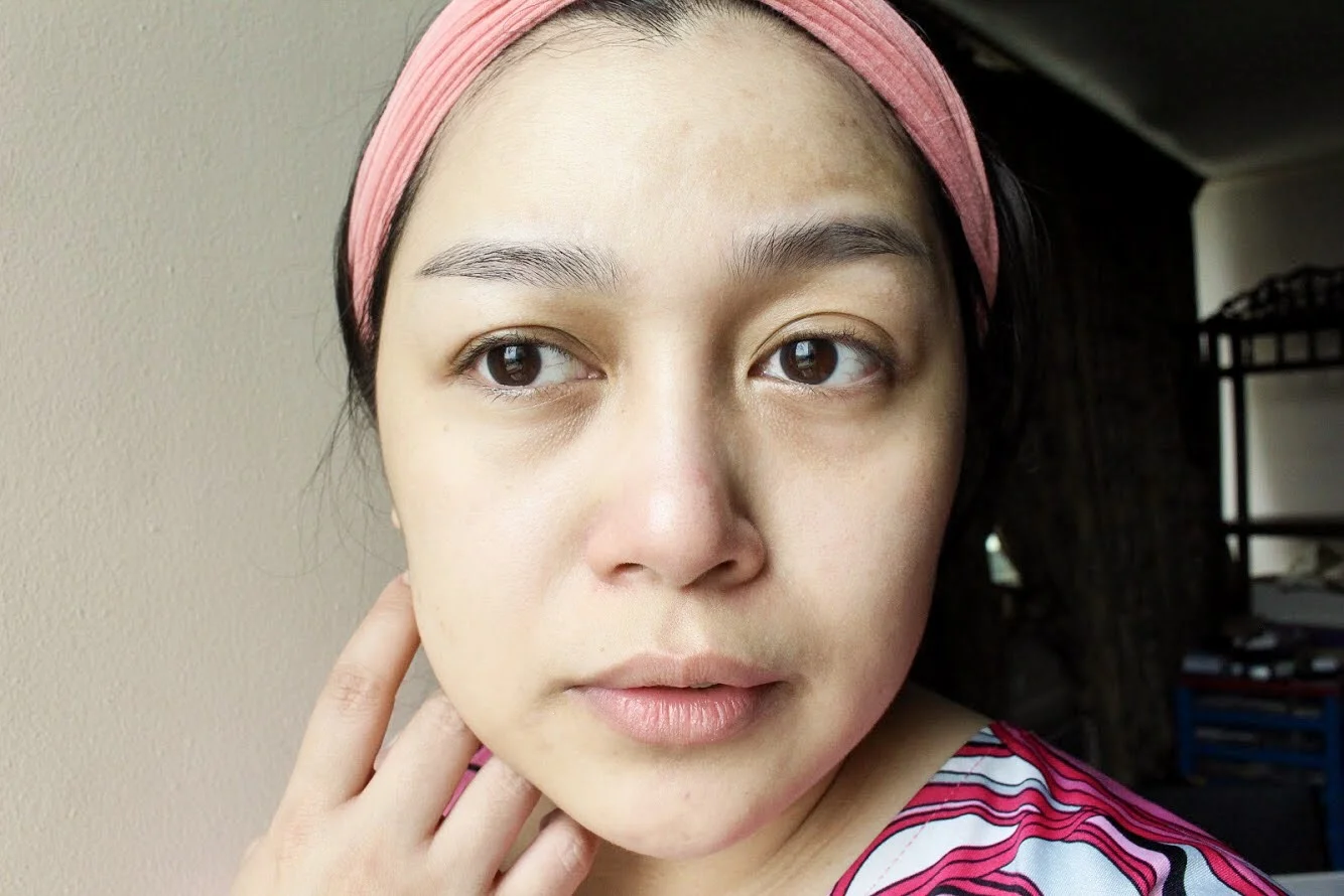 Before: Skin looks dull and gray, pimple on the nose and chin, flakiness on the cheeks