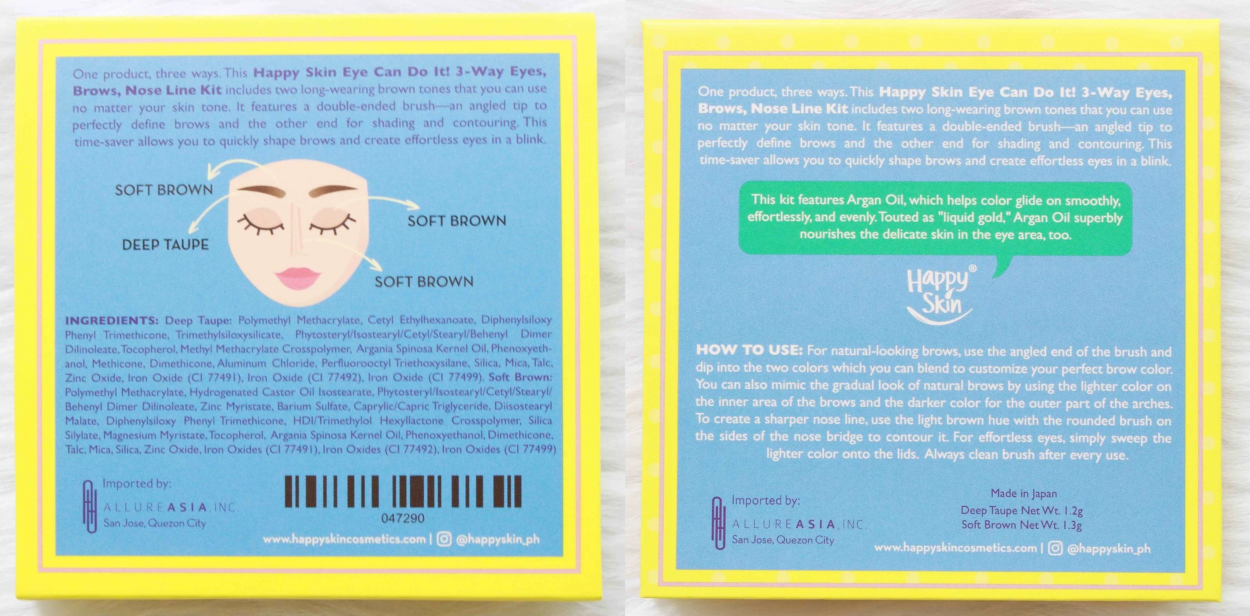 Brown is probably one of the most useful colors in makeup artistry. It allows us to contour our features, add contrast in strategic areas, and can be used pretty much anywhere from our scalp to our toes. Happy Skin was onto something when they created their new Eye Can Do It 3-Way Palette (P699 at happyskincosmetics.com) as this contains two versatile shades of brown that glide and blend easily on skin. Let's take a closer look!