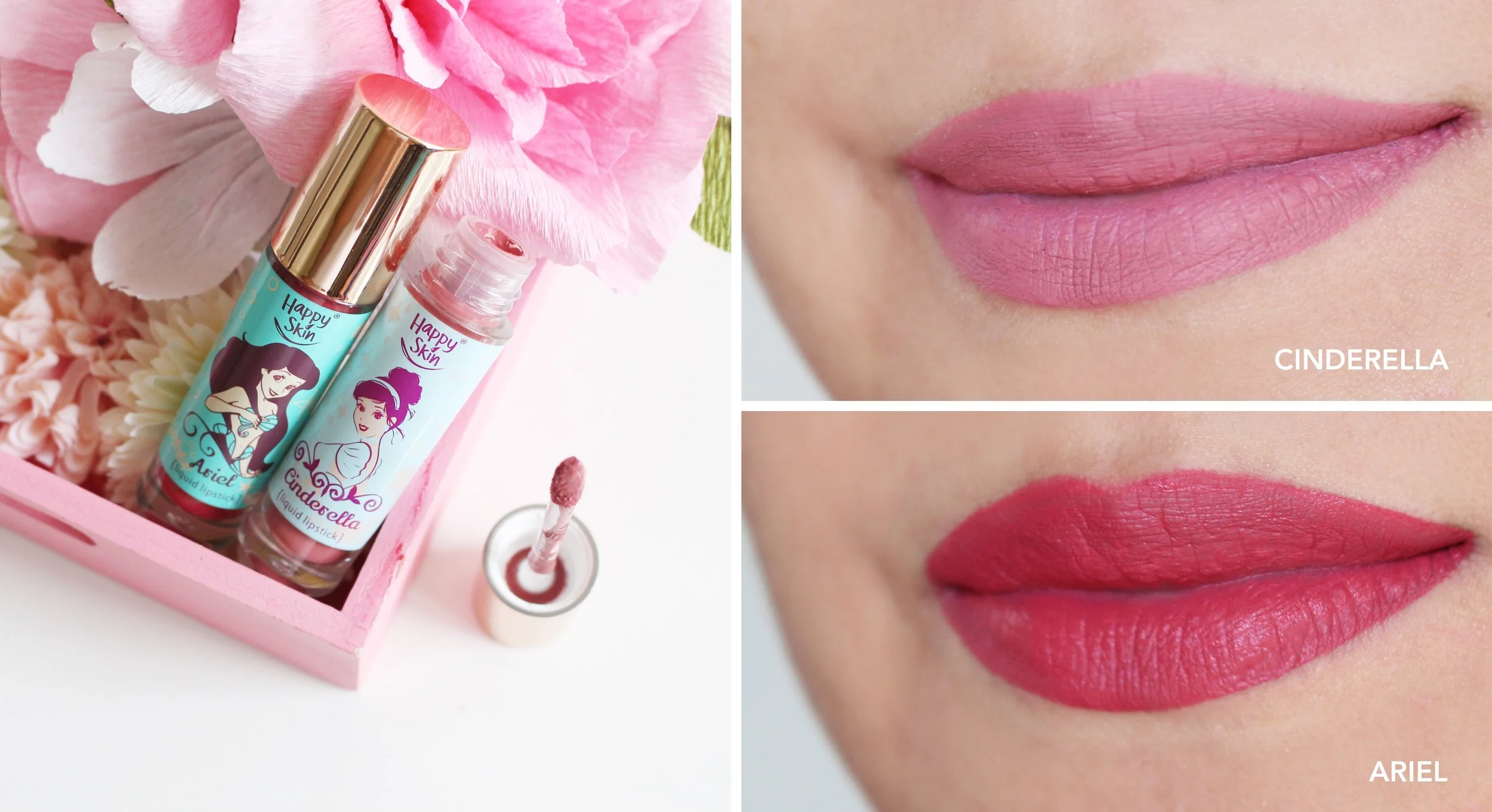 After working closely with Disney, Happy Skin came up with four lip duos inspired by some of our favorite magical princesses: the Moisturizing Lippie Set (Belle and Rapunzel), Moisturizing Matte Lippie Set (Snow White and Aurora, Elsa and Anna), and the Liquid Matte Lipstick Set (Cinderella and Ariel). It's a smart move for Happy Skin to come up with a lippie collection, as these are their strongest, best-selling products - you can't go wrong with their classic satin lipsticks, the bold mattes, and the more recent liquid mattes. Each are highly pigmented and opaque in one or two swipes. In my past experience, the lipsticks stain and stay on for about 3-4 hours.