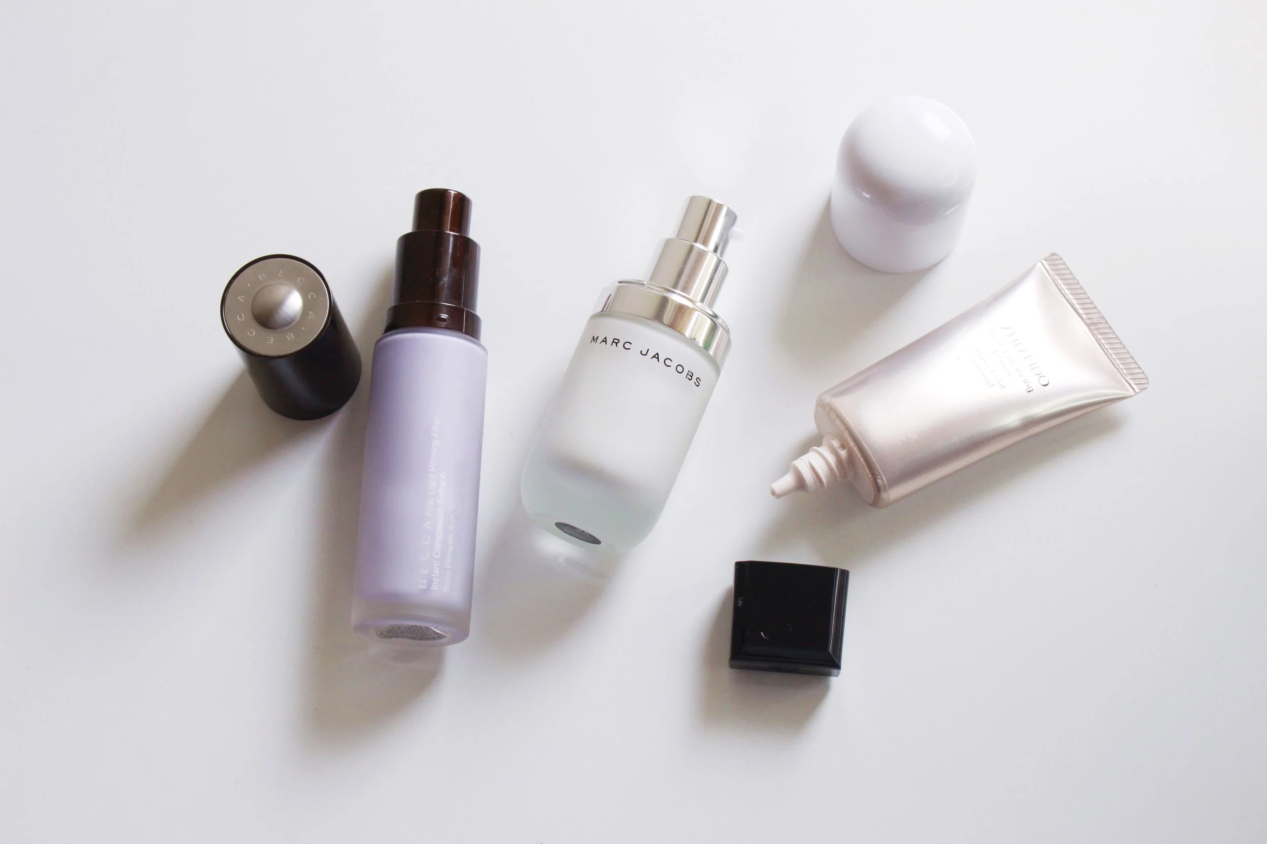 I have a few favorites in my stash: the Becca First Light Priming Filter (P2,234 at Sephora.ph) is a color-correcting primer with hyaluronic acid and bluish tint to brighten skin. It has a runny texture. I use this daily and my skin looks fabulous even without any foundation on top. The Marc Jacobs Coconut Face Primer (P2,312 at Sephora.ph) feels like cream moisturizer; it has a glowy finish with no visible shimmers. I love this with heavy liquid foundations as it diffuses the coverage a bit. Smells sooo nice too! Finally, I've got the Shiseido Glow Enhancing Primer (P1,750 at Shiseido stores). This feels more like a traditional primer, with a softer glow compared to the other two.