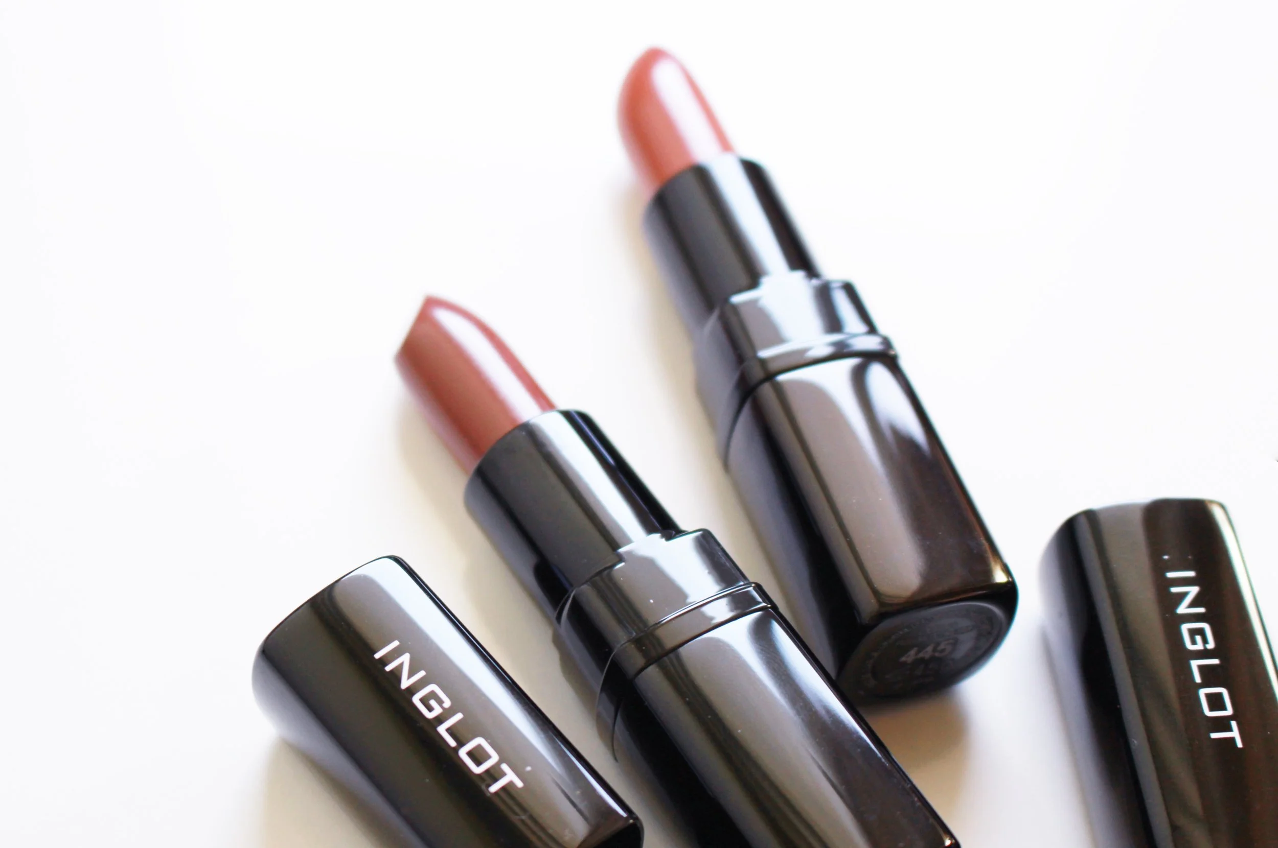 They looked much too similar at first that I thought I got the same colors. But even though they're separated only by four counts on the shade scale, the Inglot Lipstick Matte in 445 and 449 (P895 each) are sisters - not twins. I have so many brown lipsticks already that I didn't open them until two months after Inglot sent them, which is regrettable since these shades are beautiful, wearable, and worth keeping an eye on in case they get buried in my lipstick pile!