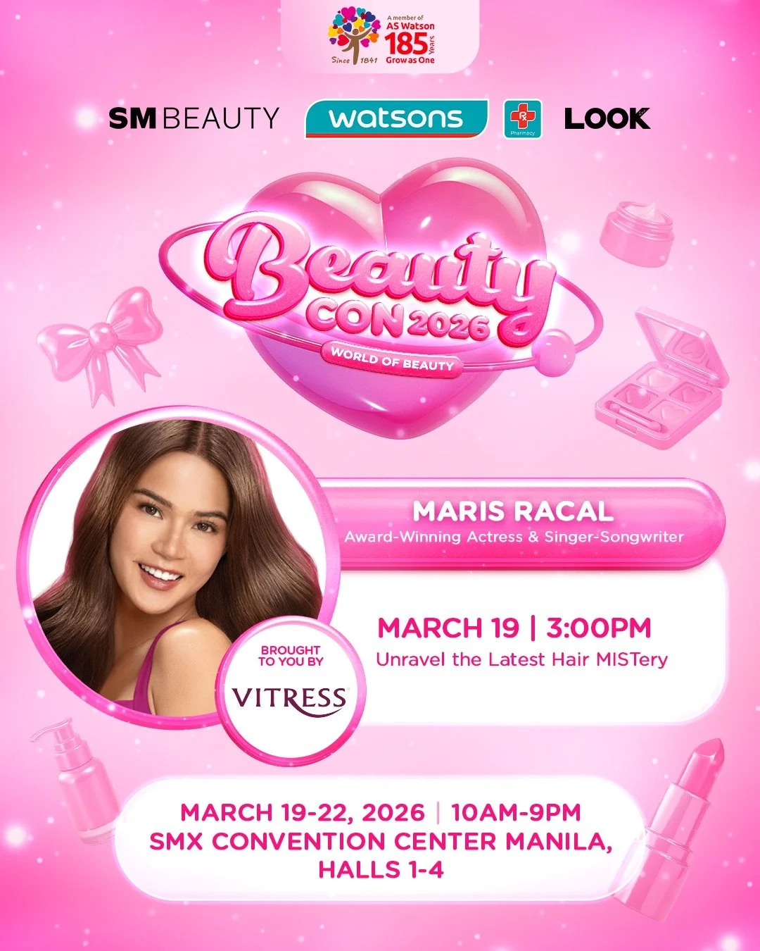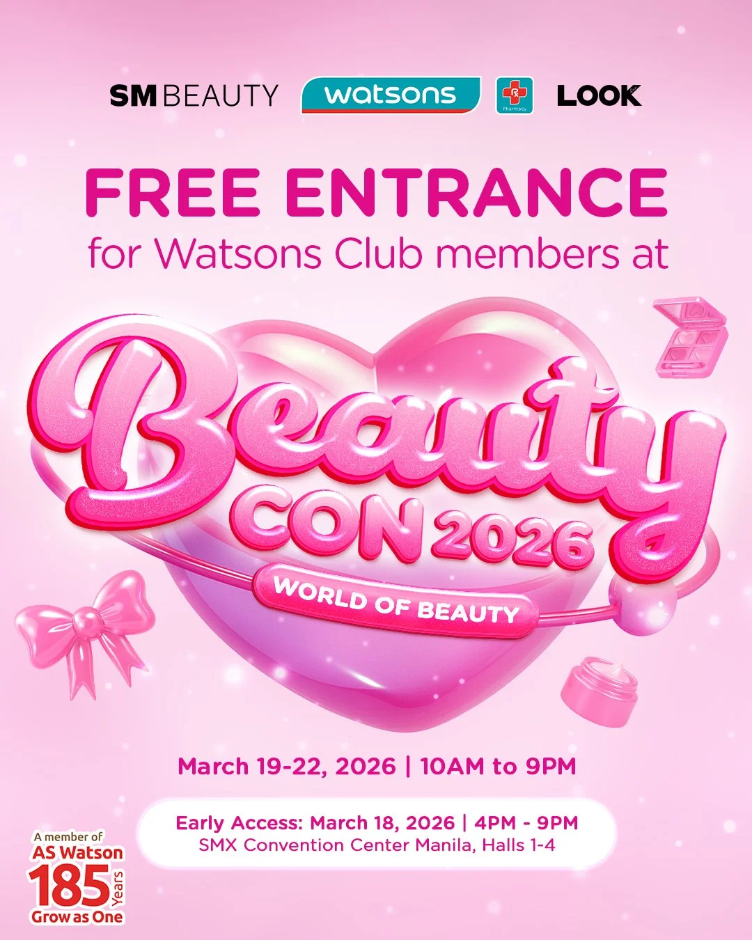 It’s that time of the year again. This year, Watsons Beauty Con 2026: World of Beauty will be held from March 19 to 22, 2026 at SMX Convention Center Manila. Watsons Beauty Club members get exclusive Early Access on March 18th from 4PM to 9PM! Watsons, Look At Me, and SM Beauty are all working together for an immersive experience of over 185 beauty brands.