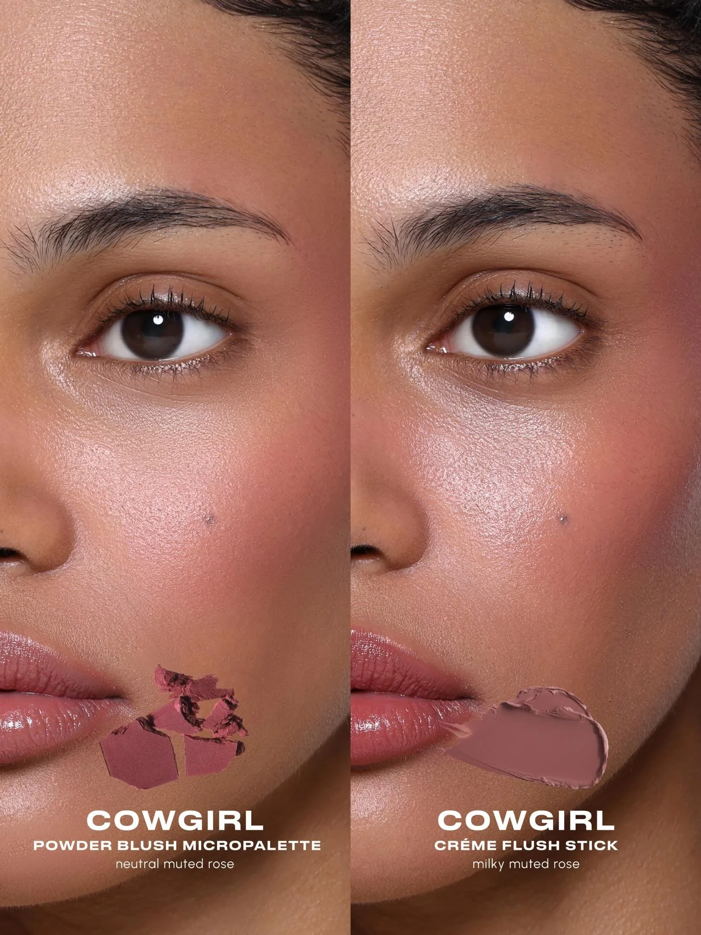 First up, let’s look at the lilppies. The Cowgirl Lip Bullet True Satin (P399) is your traditional bullet lipstick with buildable neutral muted rose color. For those who prefer a lighter, more hydrated feel on the lips, there is the Cowgirl Mousse Lip Tint (P399), a milky muted rose shade. Top it off with the Cowgirl Fat Gloss (P399) in the same milky muted rose shade.