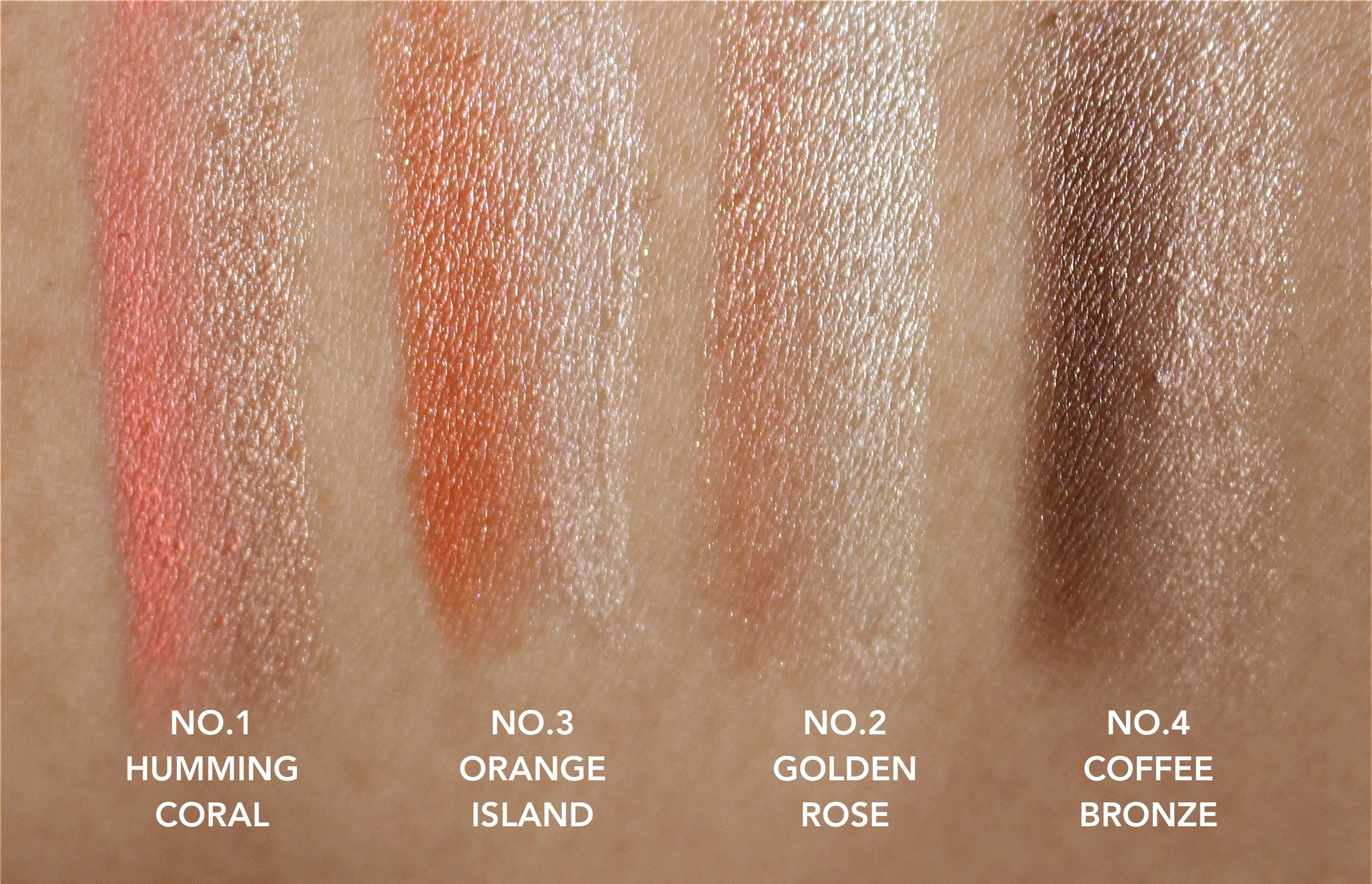 I like No. 4 Coffee Bronze the most since it's not as emollient as the other three shades. The rest I plan to use as highlighters since I hate to put great colors to waste. ^_^
