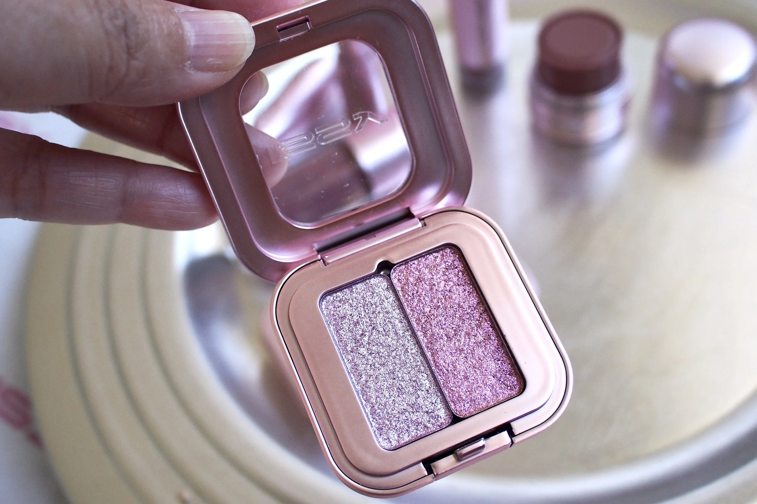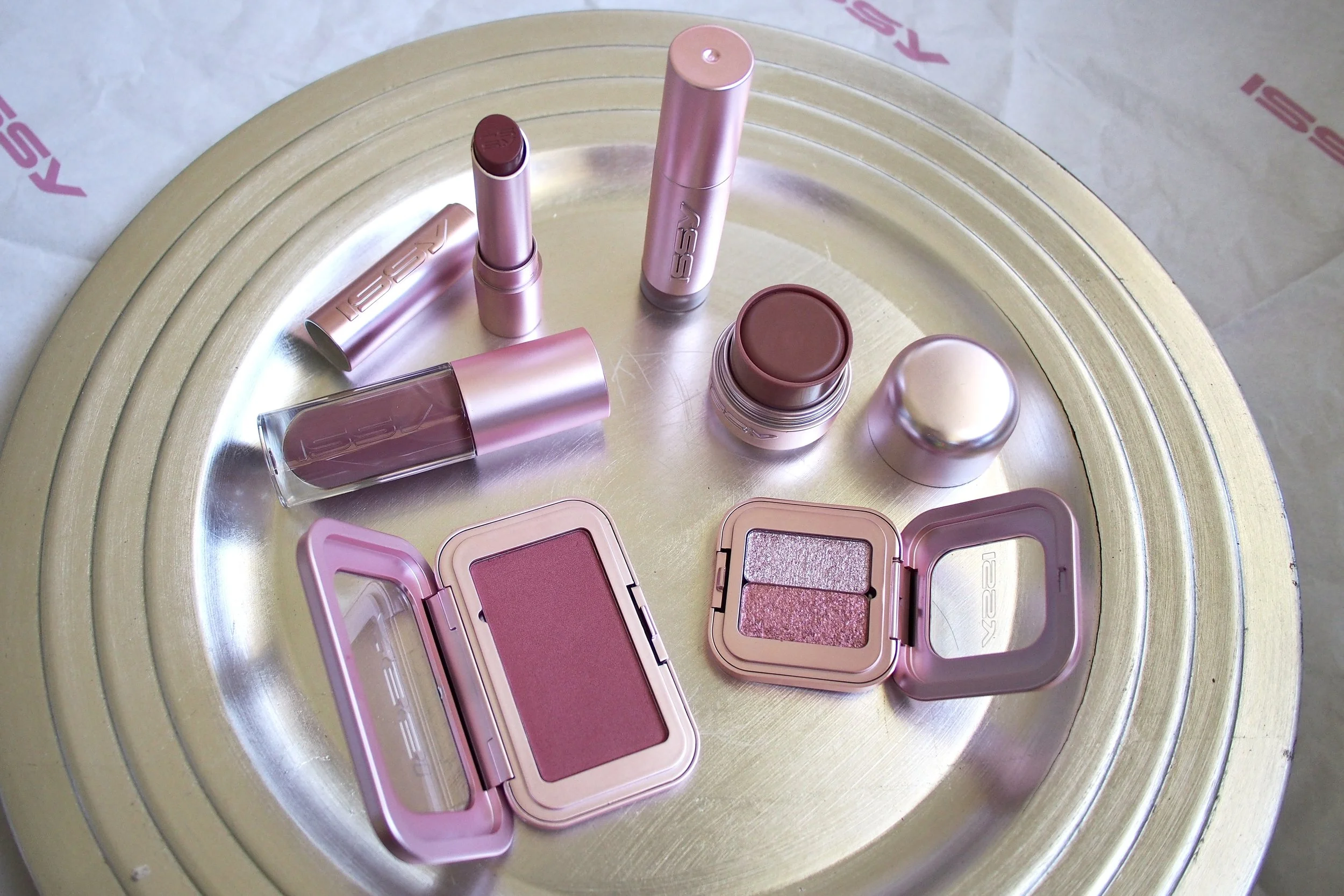 The whole collection comes in limited edition chrome pink packaging, which truly makes it a collectible lineup for Issy fans. I especially love these two for their versatility: you can use the Crème Flush Stick all over the lids, lips, and cheeks as a base shade, then layer the Cowgirl Powder Blush on top for a pop of color. The Powder Blush formula feels almost like a cream, and I find I can apply and blend it out with just my fingers, which makes it a great pick for quick makeup days or on-the-go touch-ups.
